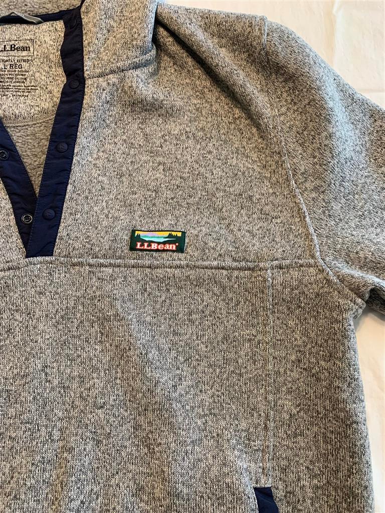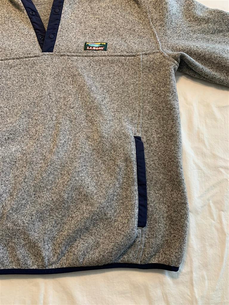 как выглядит LL Bean Mens Large Regular Gray Snap Button Hoodie Fleece Slightly Fitted - Mint фото