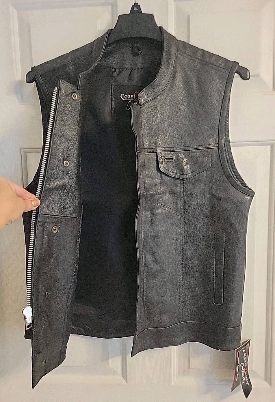Men's Coast 2 Coast Black Leather Motorcycle Club Vest -Concealed Carry Gun Sz M