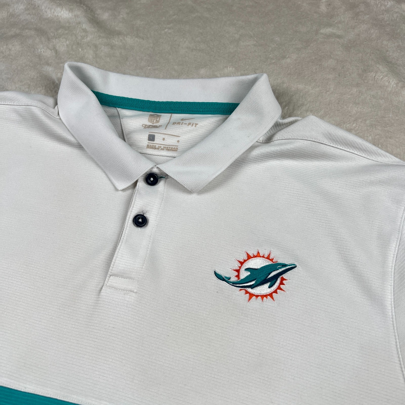 Miami Dolphins Nike Polo Shirt Men Large Blue White Football Dri-FIT On Field
