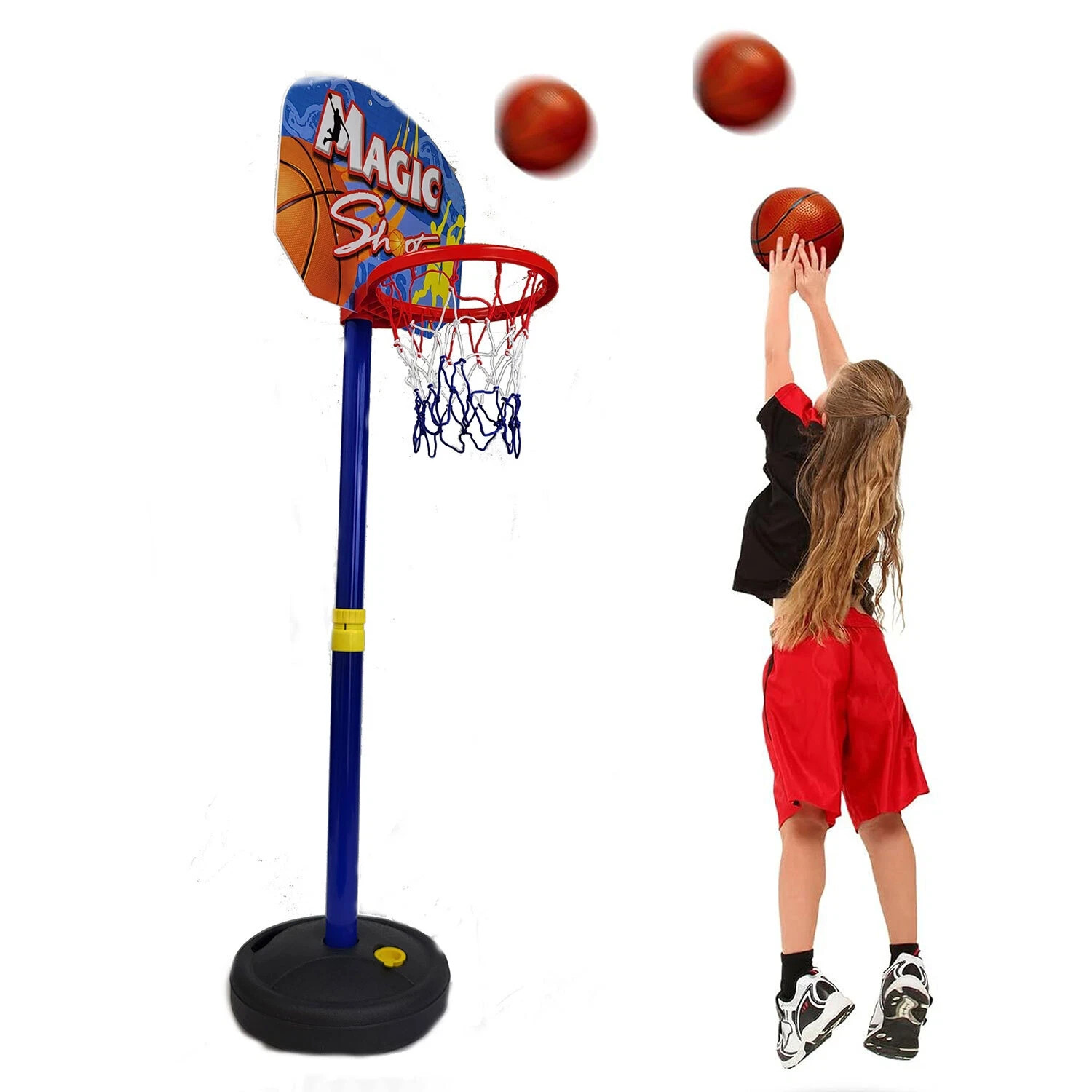 как выглядит Kids Toddler Adjustable Basketball Hoop Goal Indoor Outdoor Toy Set W/ Ball Pump фото