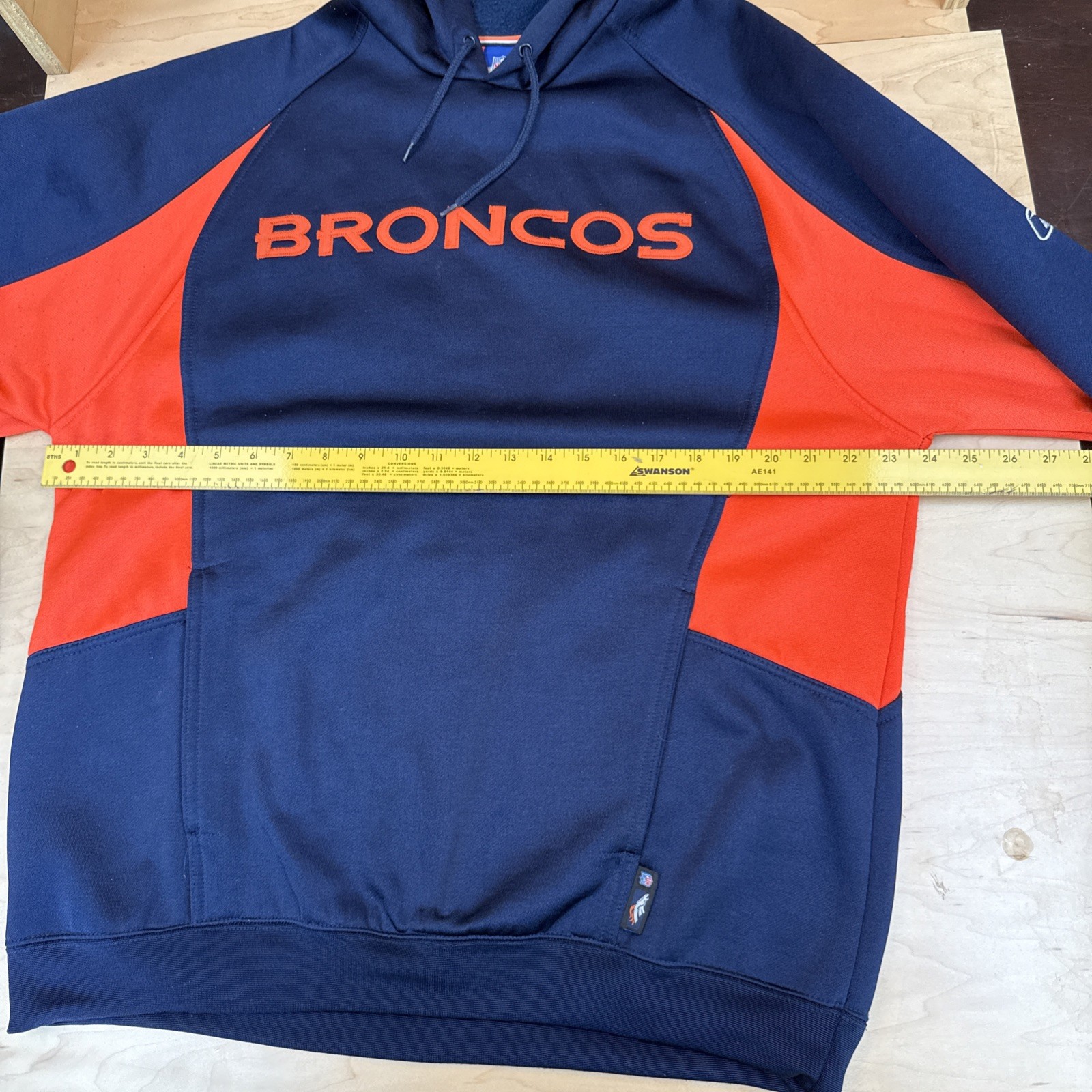 как выглядит Denver Broncos NFL Team Apparel Men s Medium Reebok Hoodie Blue Orange Logo фото