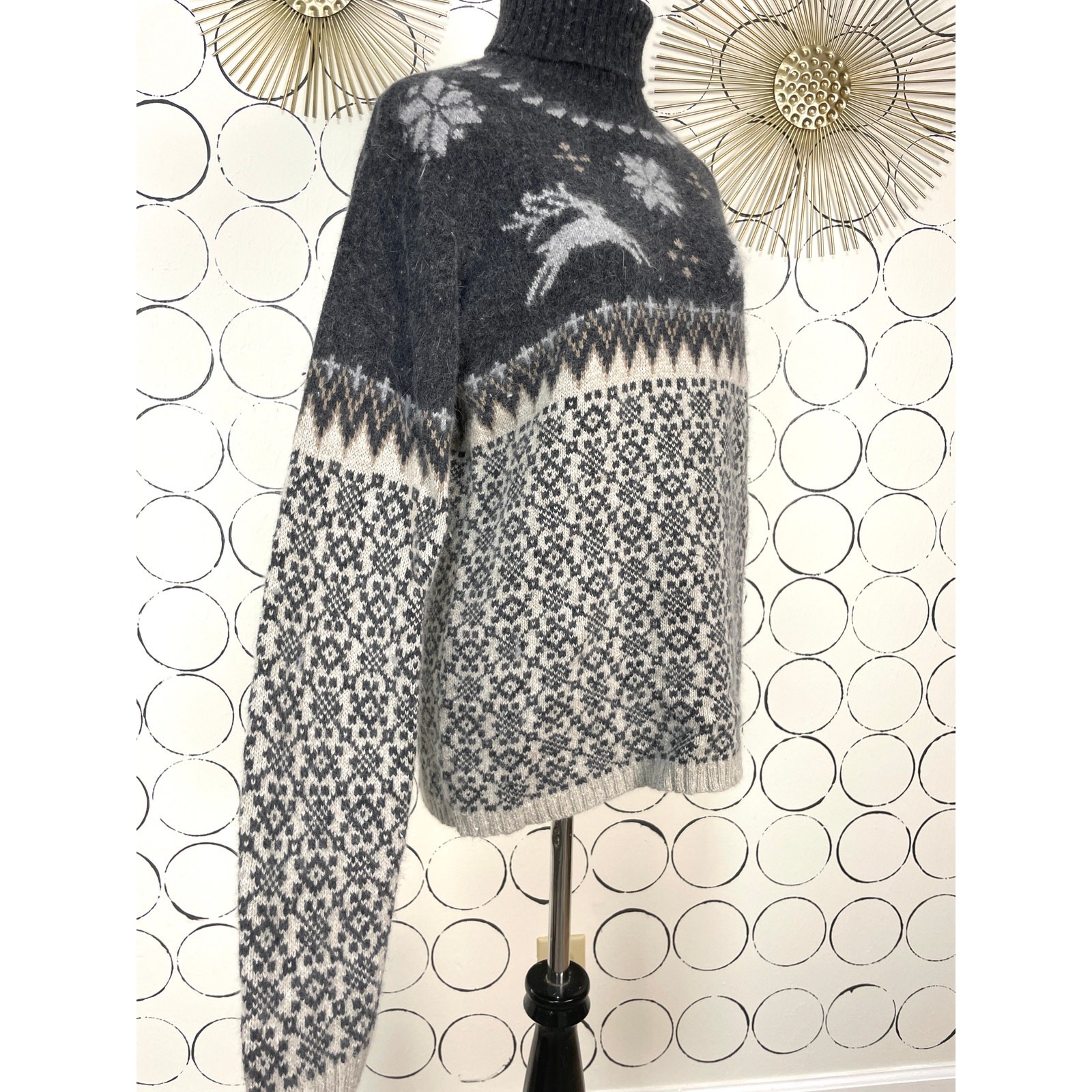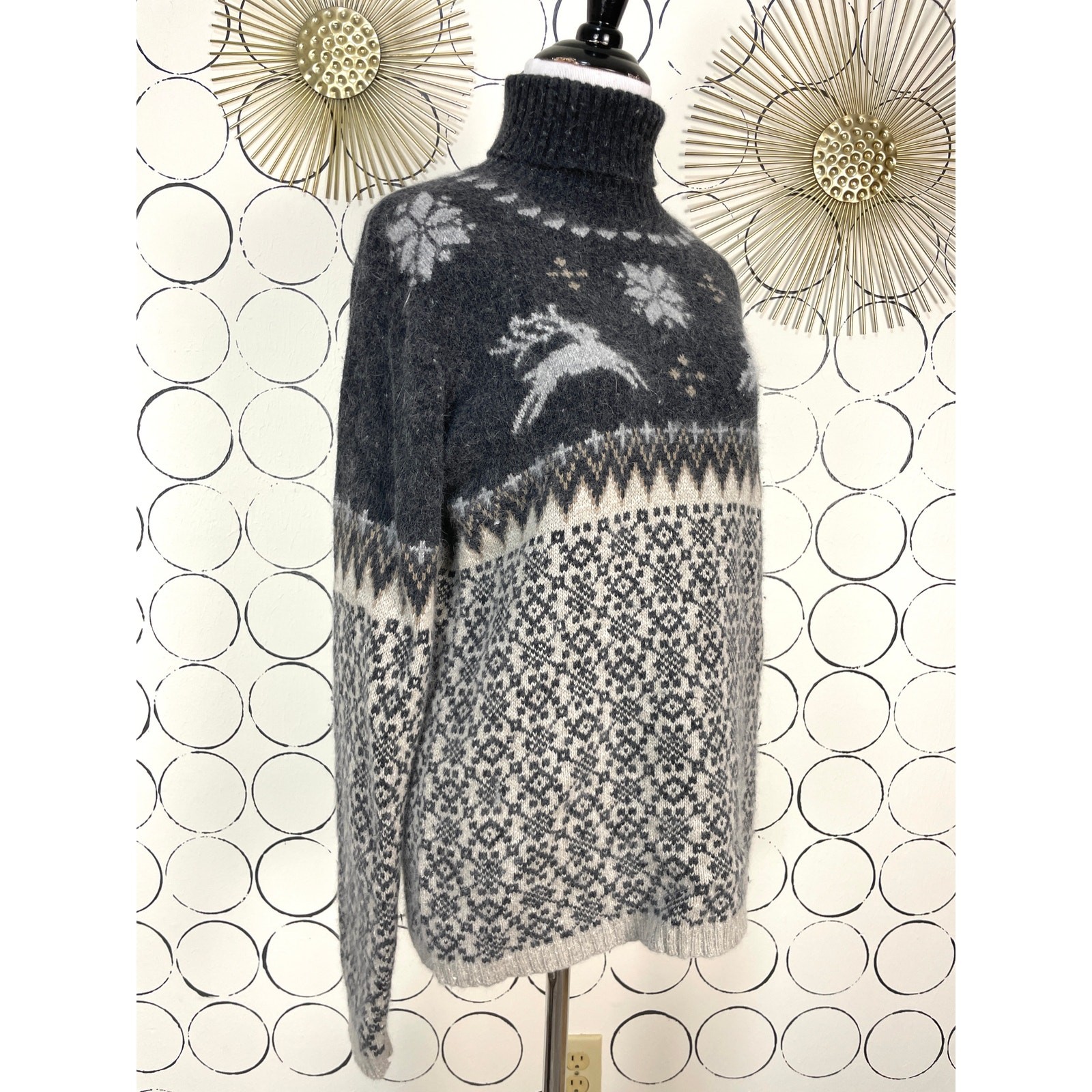 как выглядит VTG Womens Angora Fair Isle Turtleneck Sweater S Reindeer Christmas Holiday Cozy фото