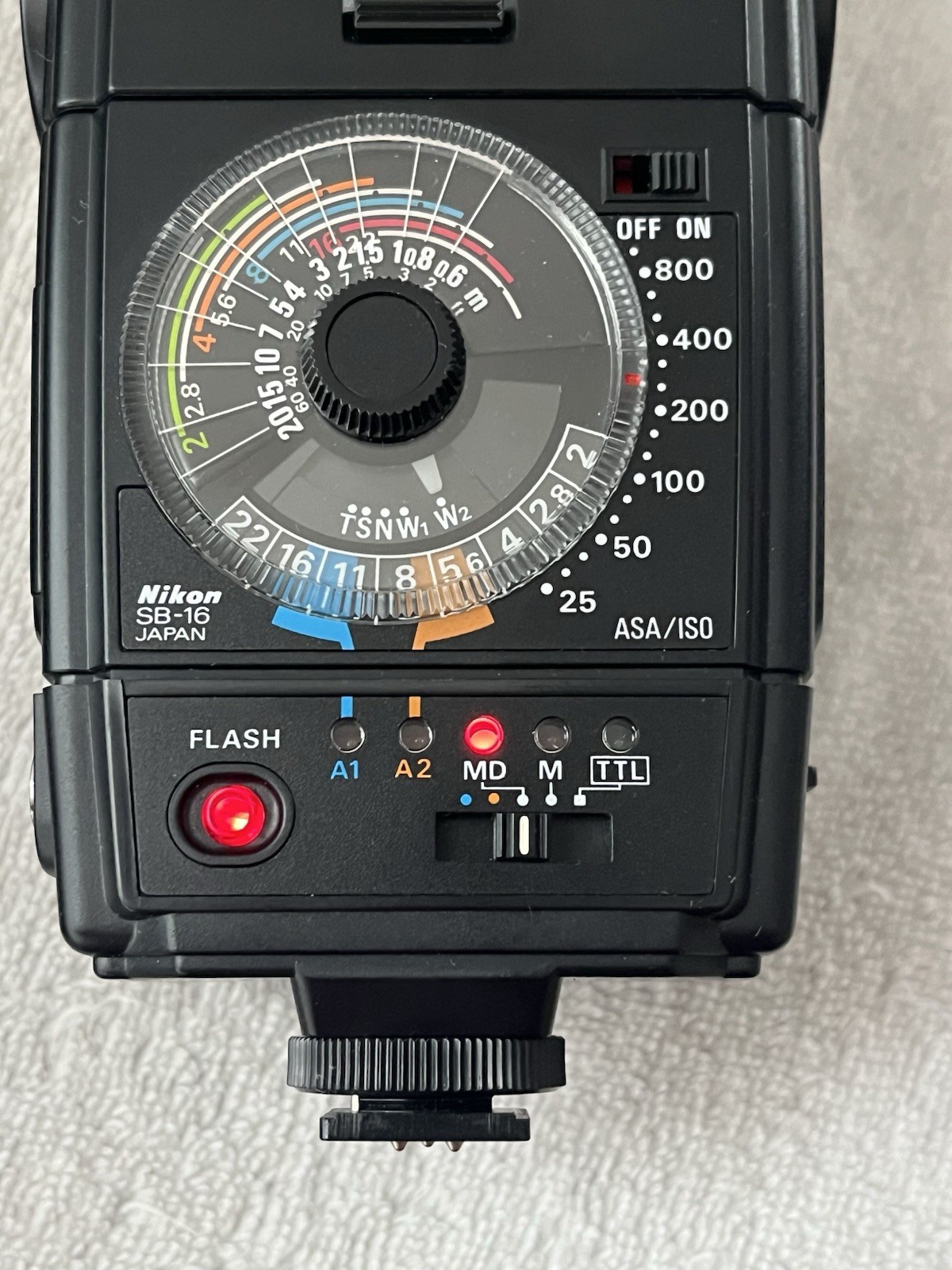 Near Mint Nikon SB-16 Speedlight Flash w/AS-9 shoe mount. Tested. Works.