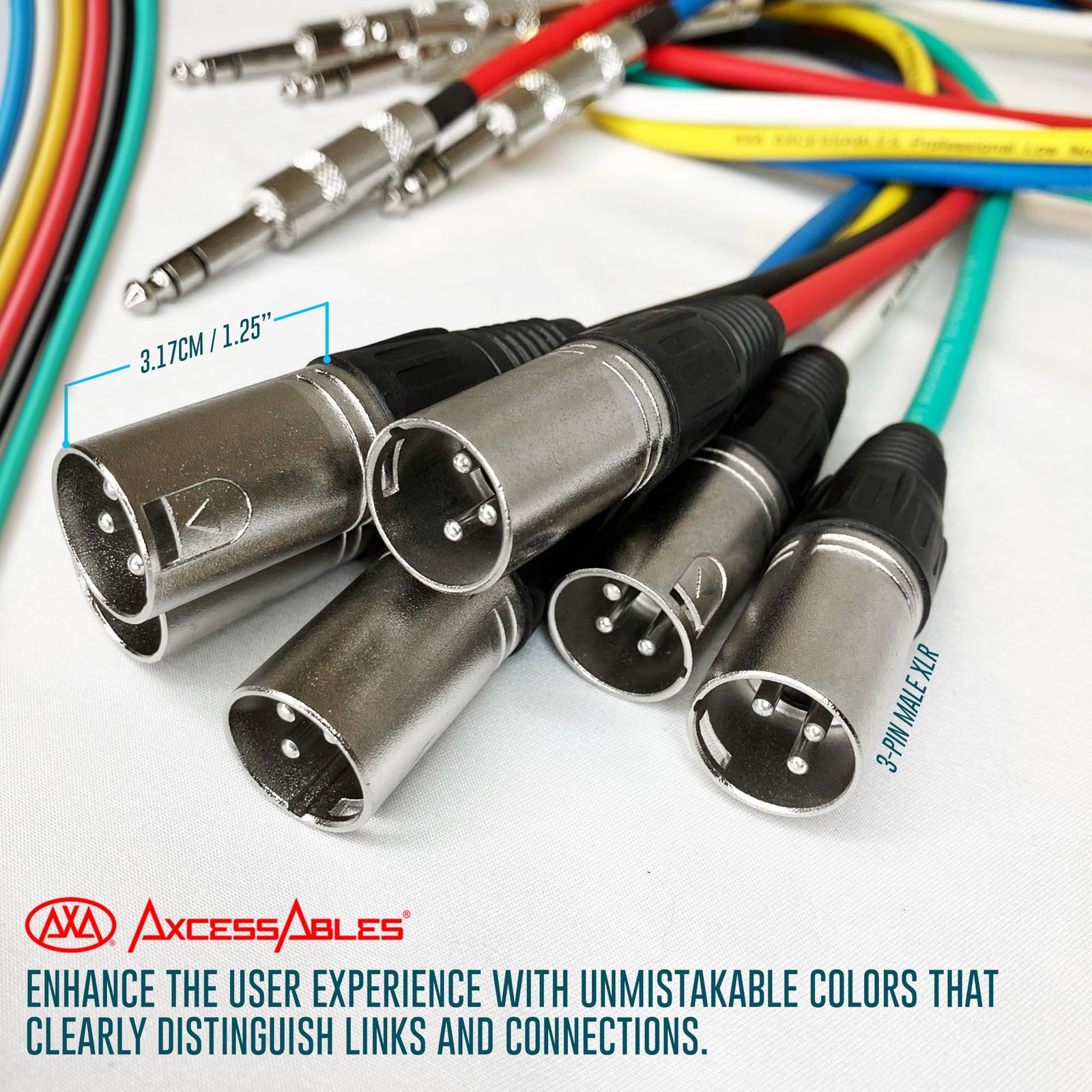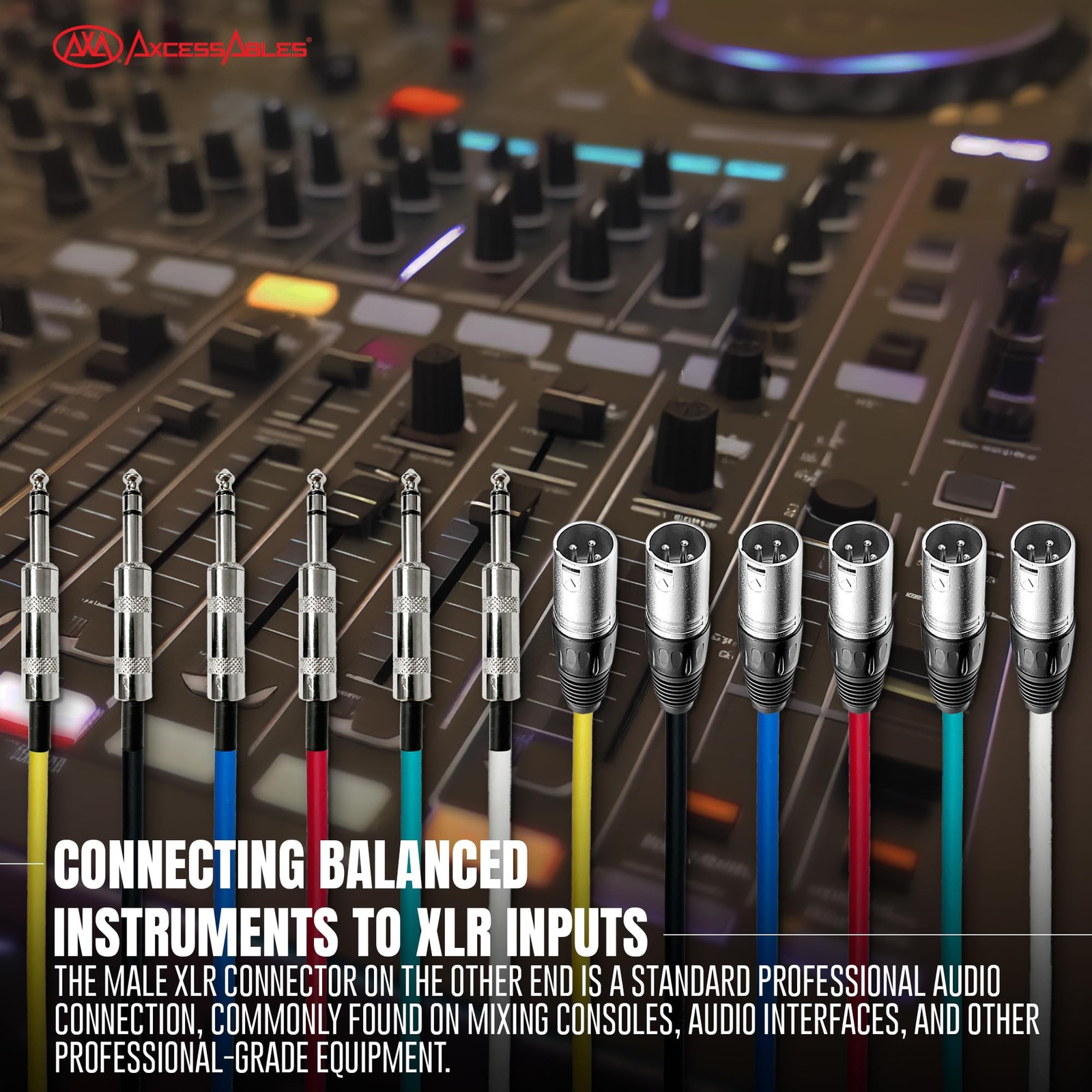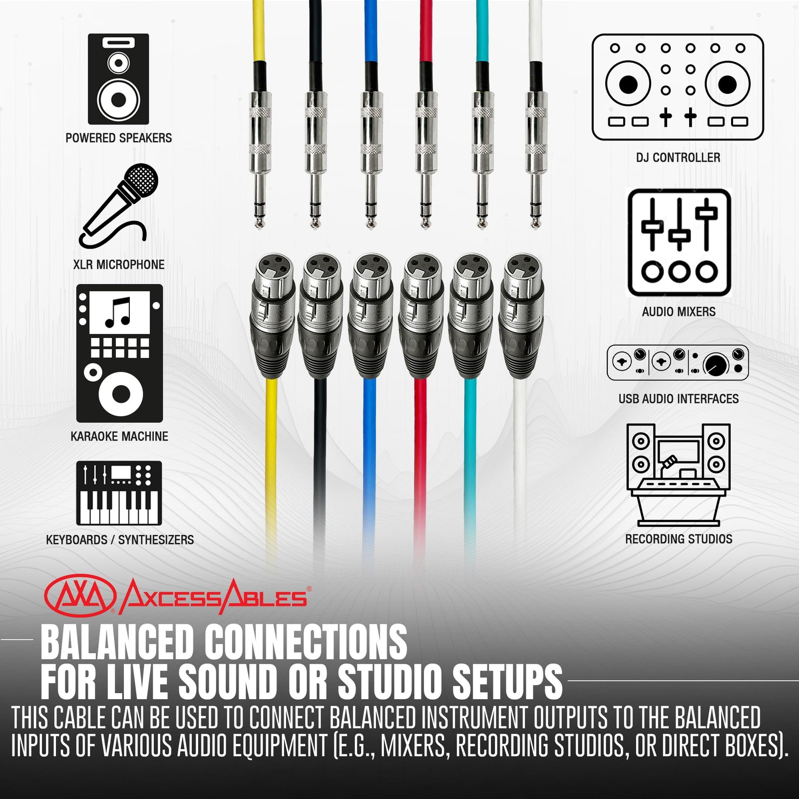 AxcessAbles XLR Female to 1/4 TRS Balanced 2ft Speaker Color Cable Pack