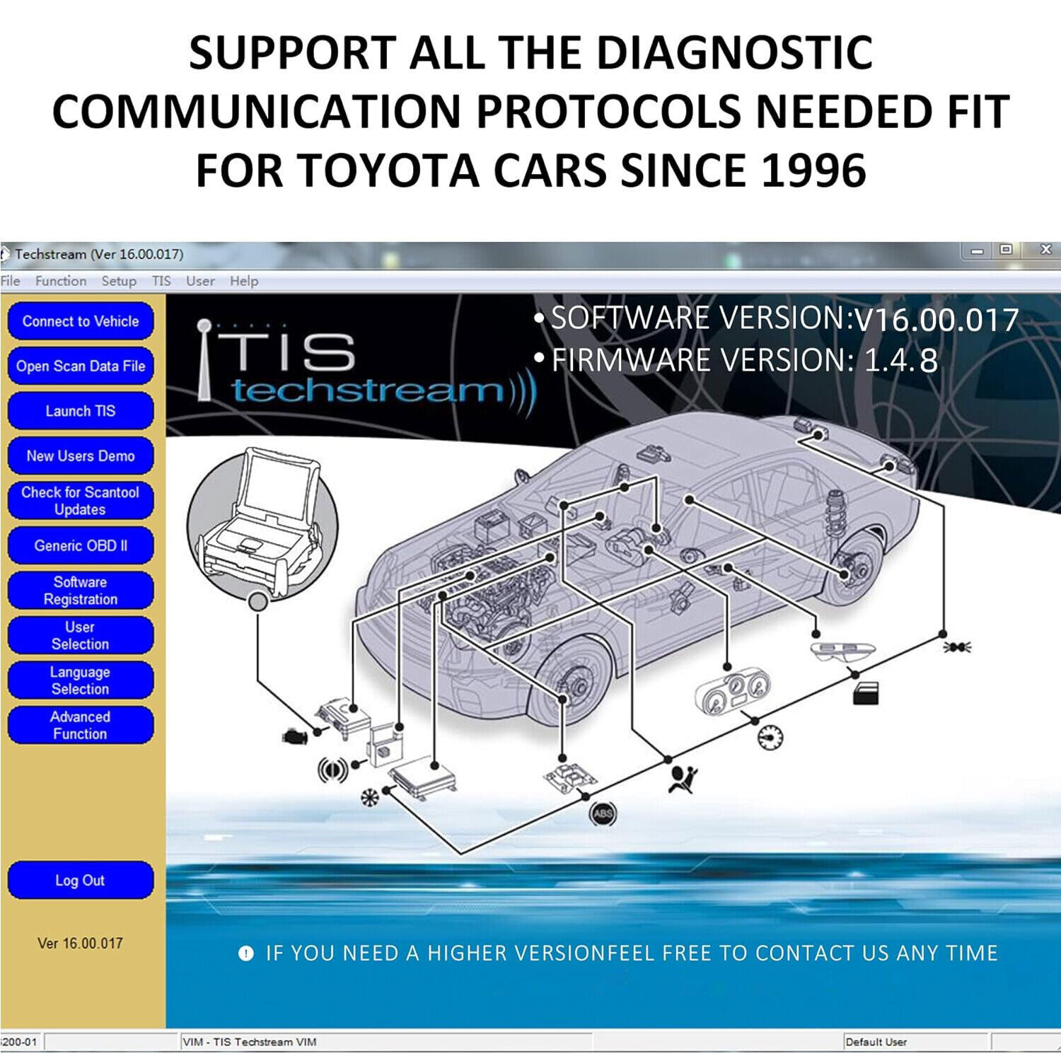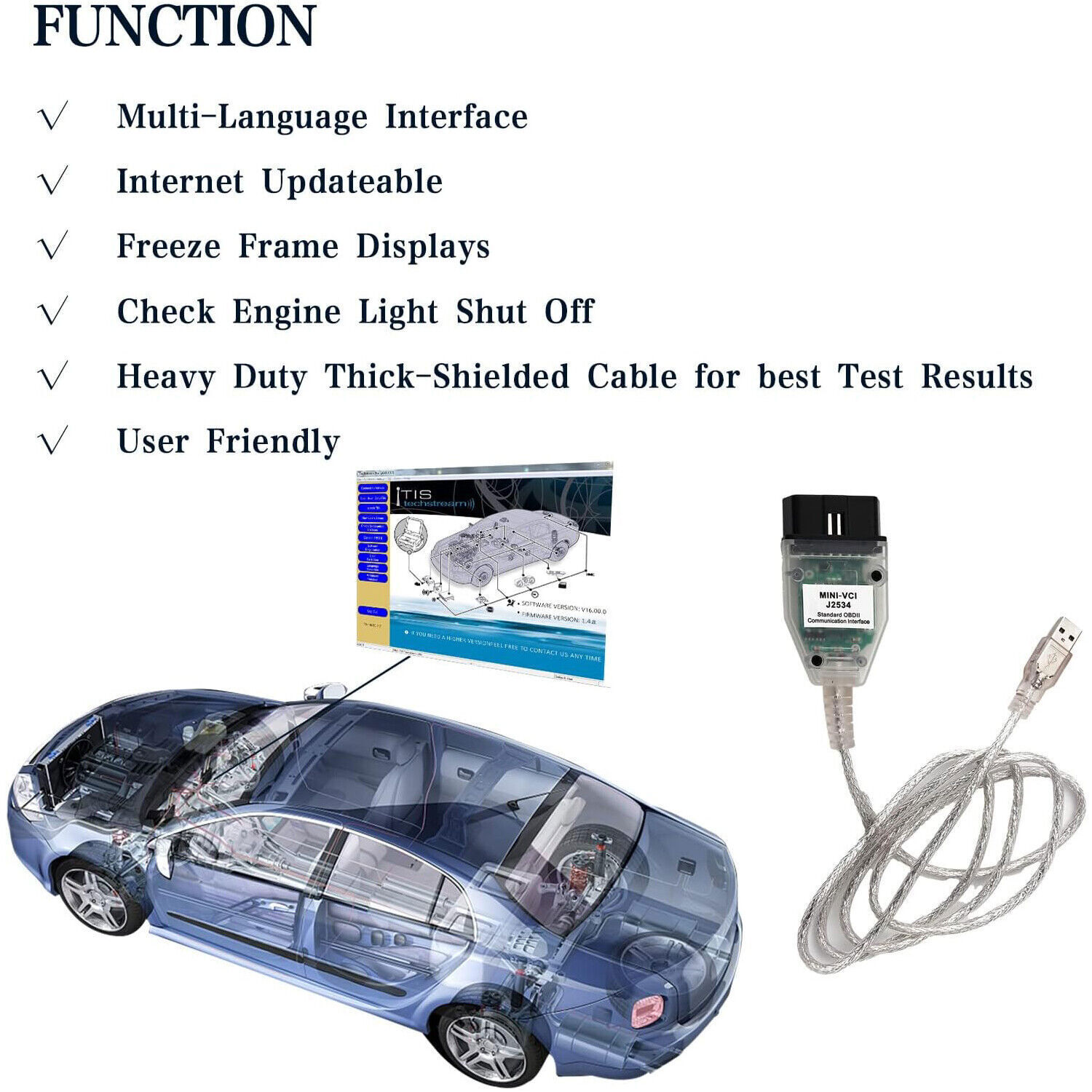 Mini VCI J2534 Cable V18.00.008 Latest Version, OBD2 Cable Connector Scanner