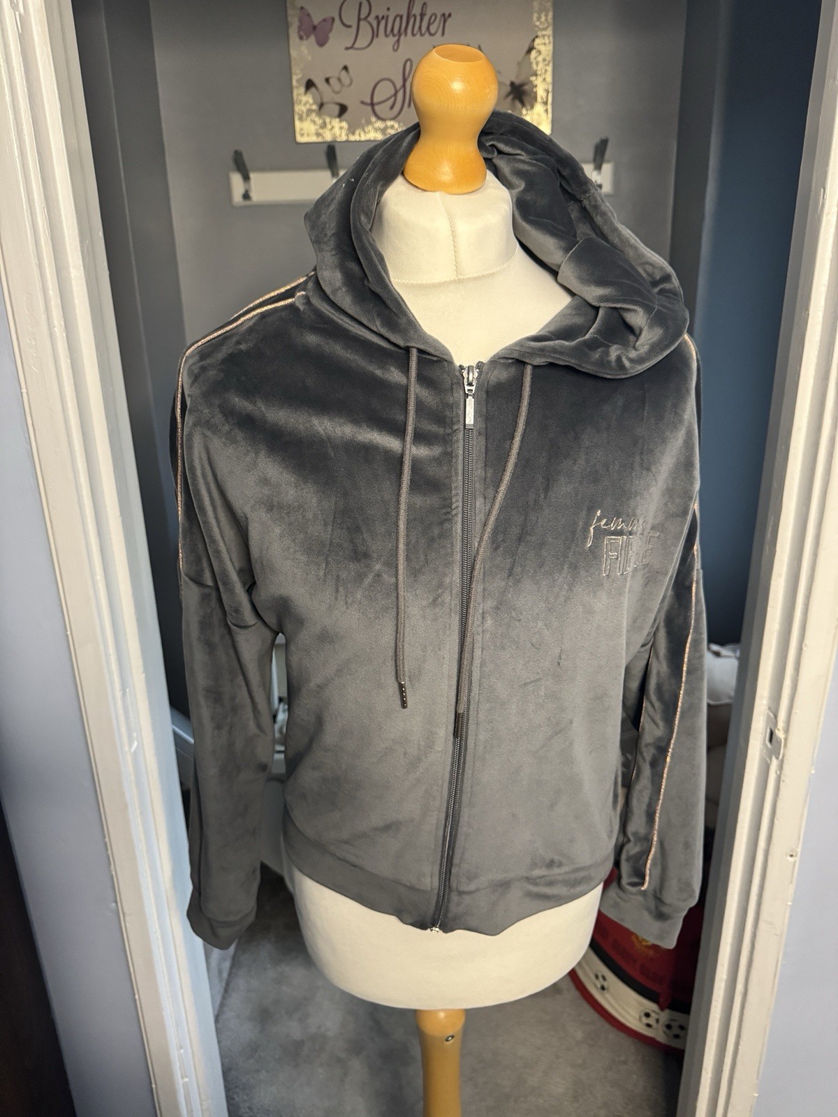 Ann Summers Grey Velour Zip Hoodie Size S UK 8 10 Soft Loungewear Plush