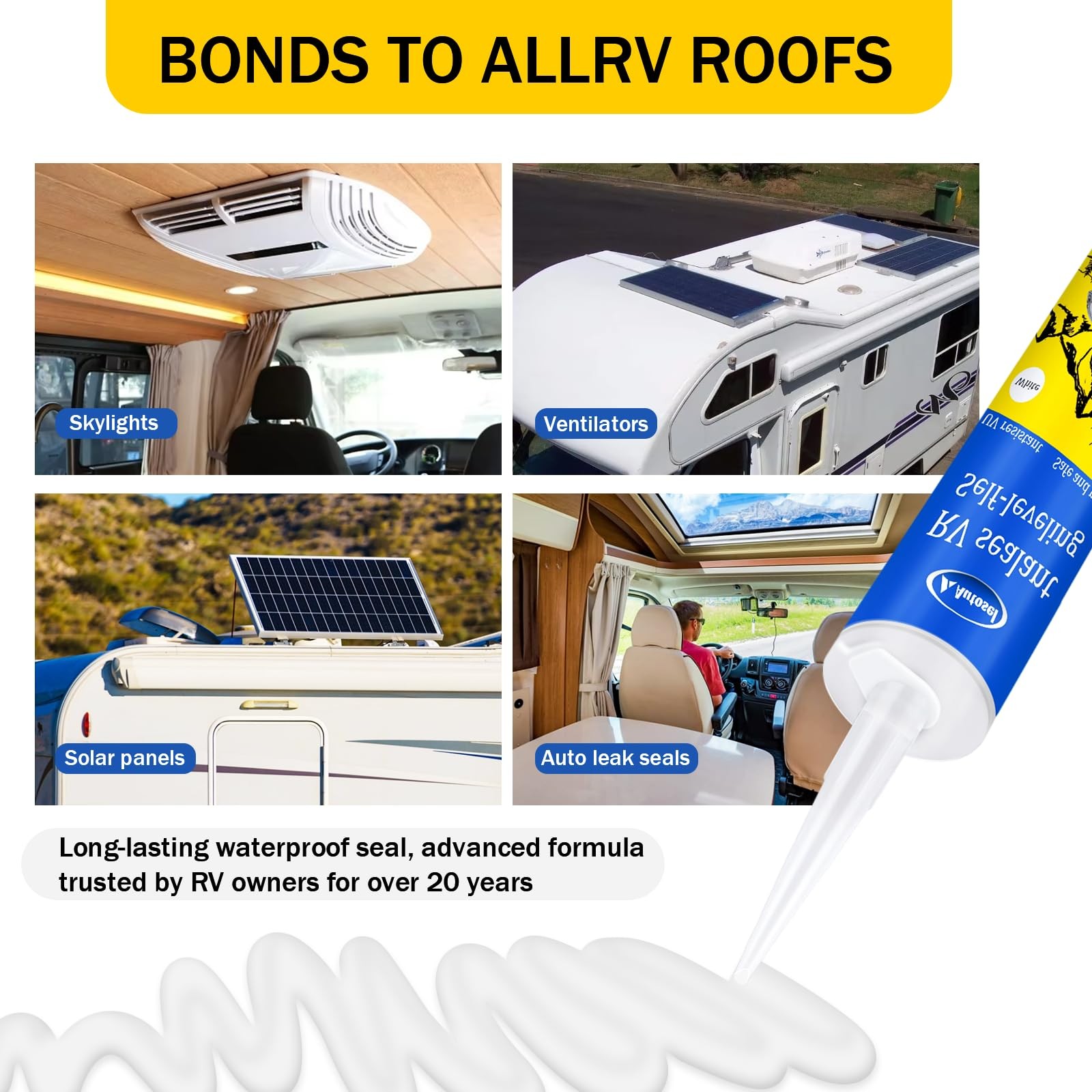 Self-Leveling RV Roof Sealant, Lap Sealant for RV Roofs, RVS Sealants and Cau...