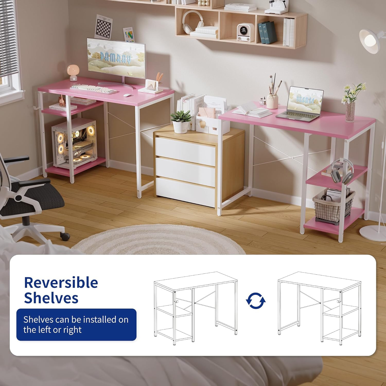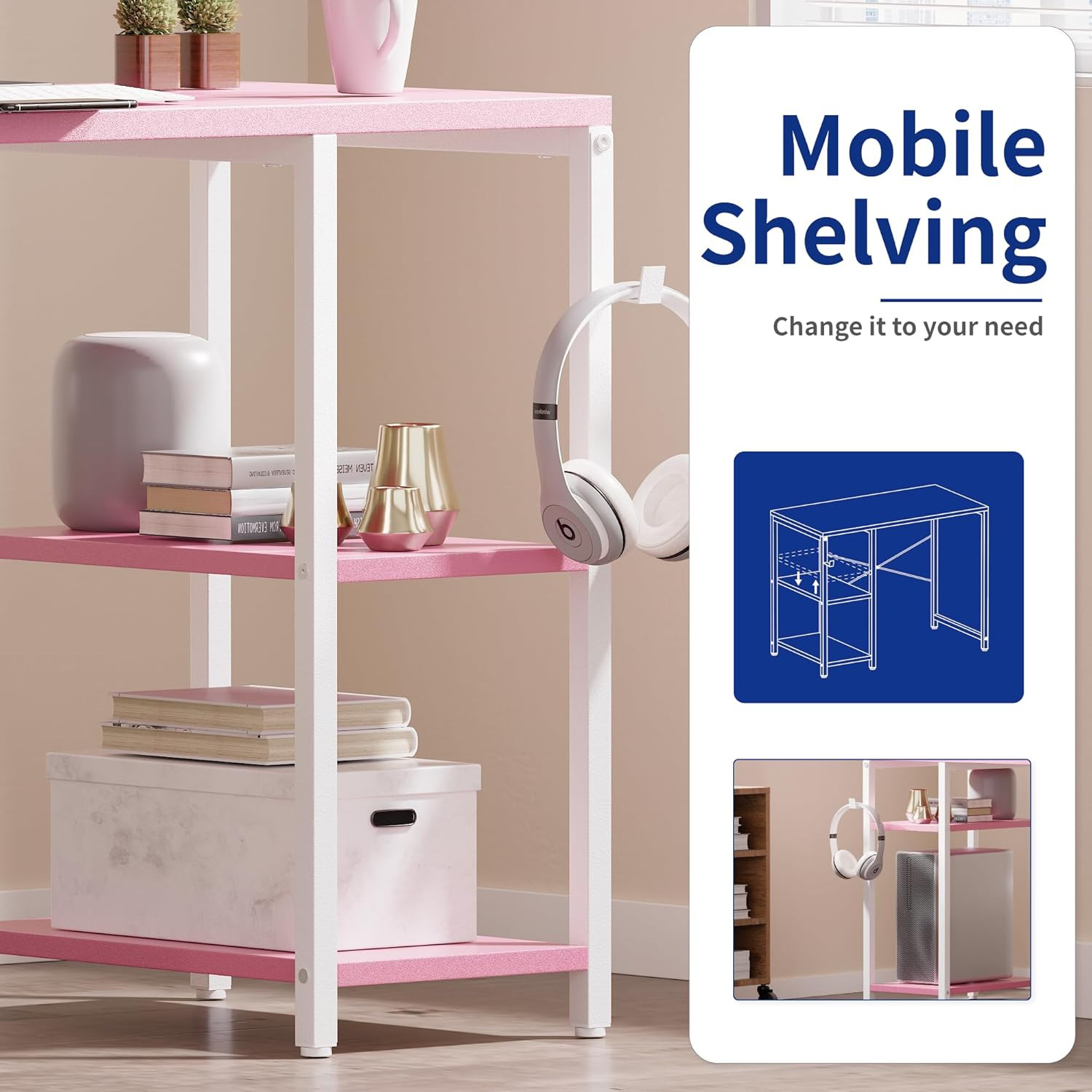 как выглядит 32 Inch Small Computer Desk with Shelves, Home Office Desk with Headphone Hook f фото