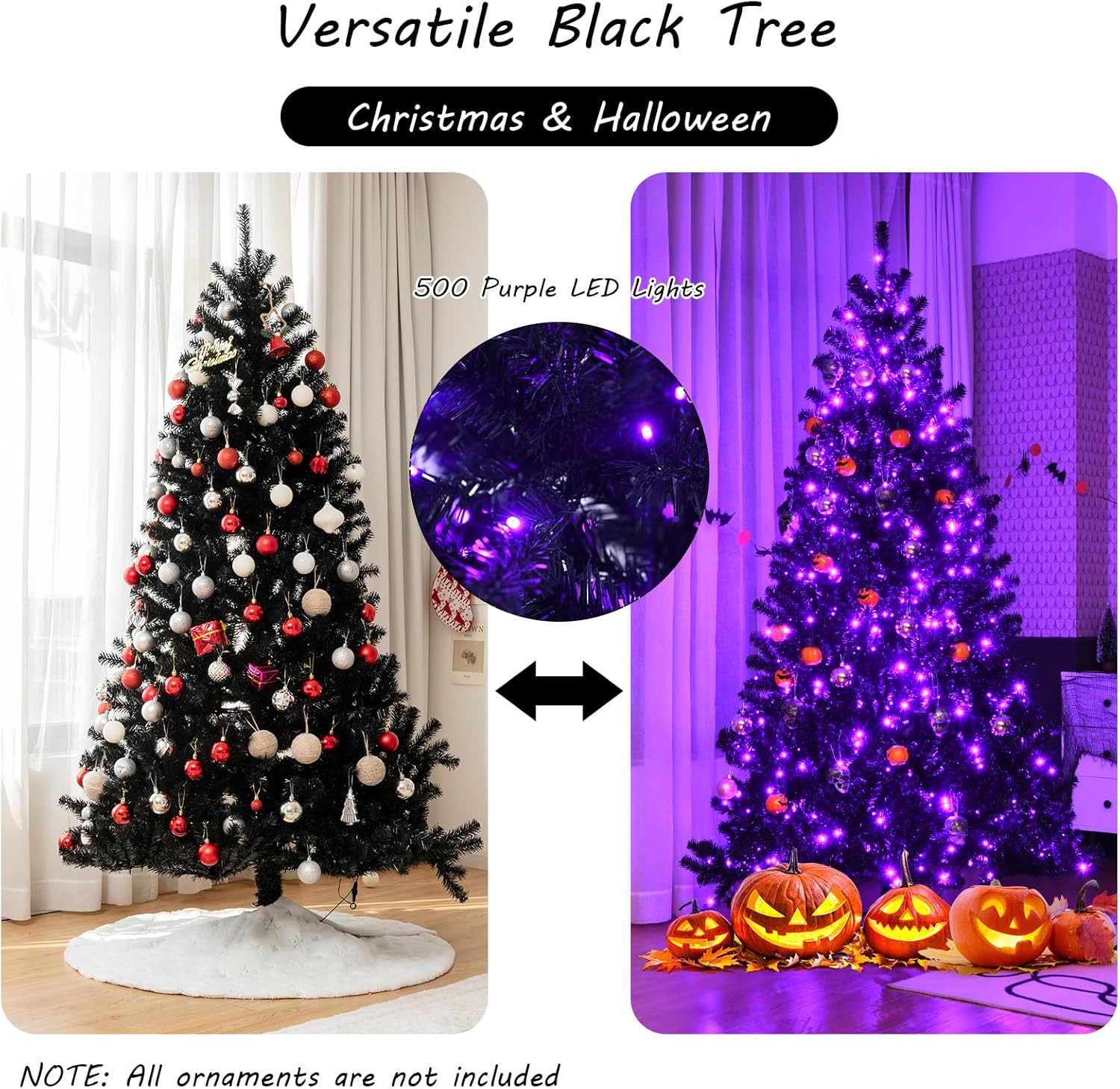 7ft Black Halloween Tree with 500 Purple LED Lights Metal Stand