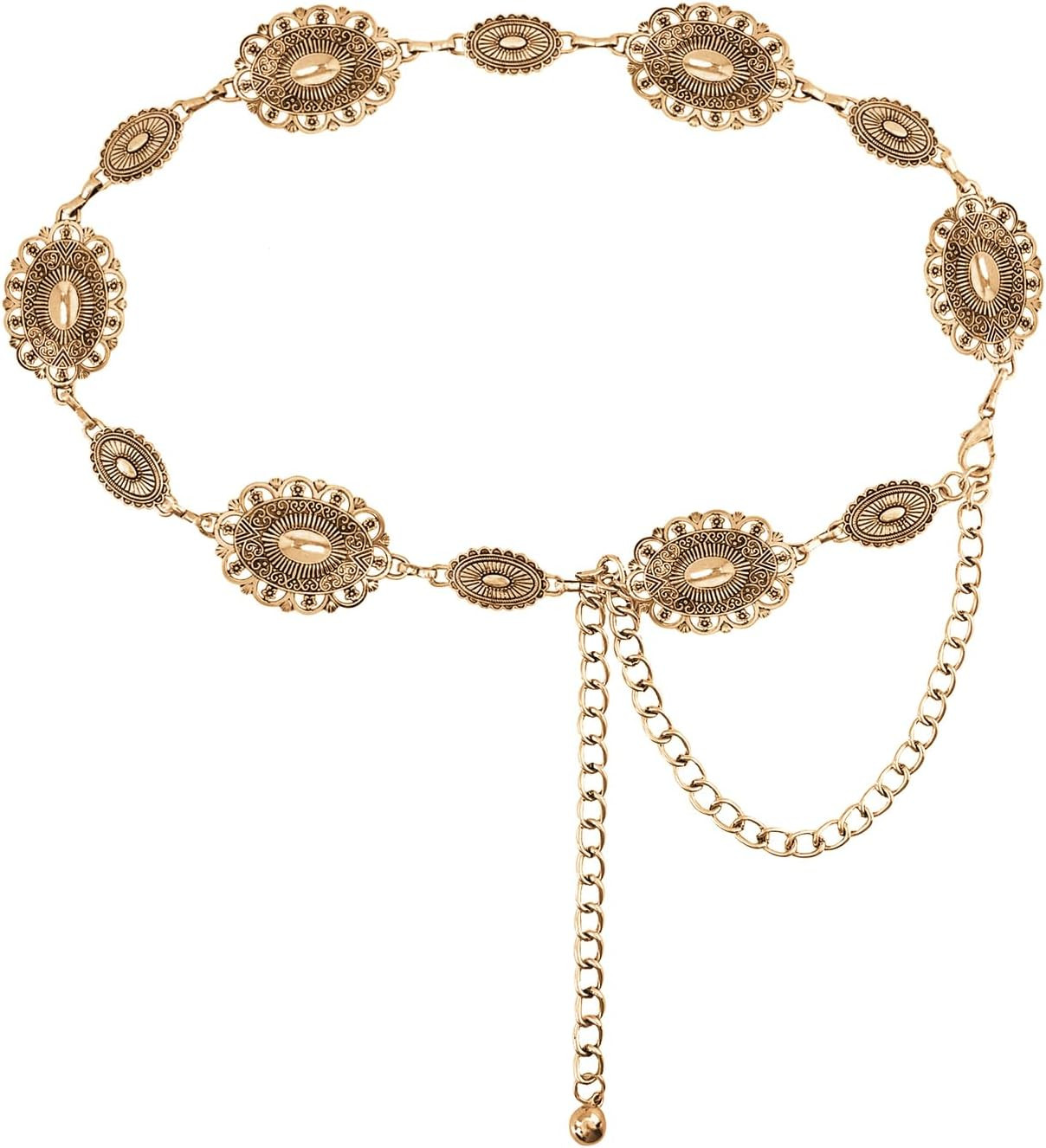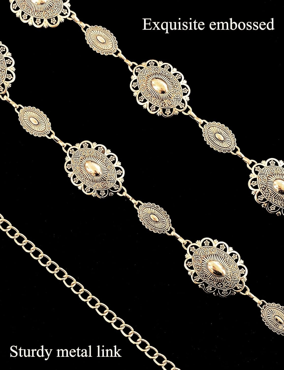 Western Belts for Woman Concho Belt Boho Metal Cowgirl Chain Belts for Dress Jea
