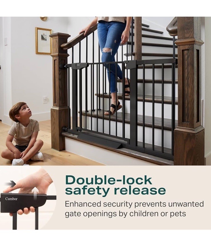 Cumbor 29.7-46 Award-Winning Baby Dog Safety Gate for Stairs/Doorway/Hall Black