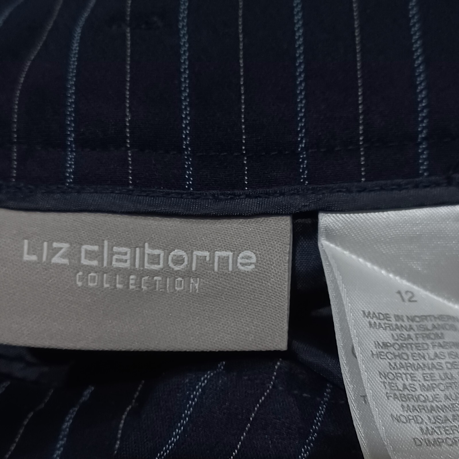 Liz Claiborne Womens Size 12 Navy Blue Pinstripe Flat Front Career Pants