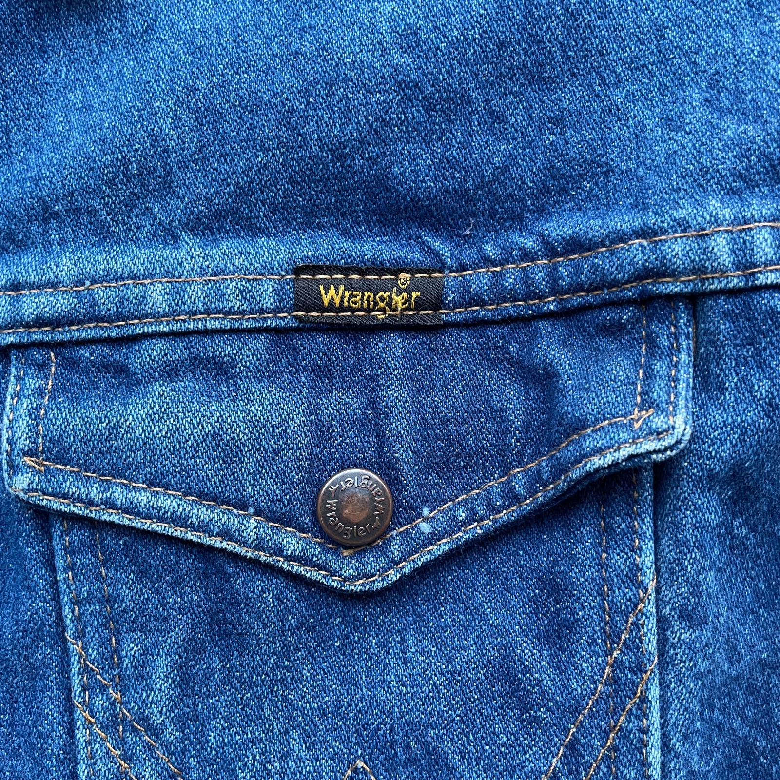 как выглядит Vintage Wrangler Blanket Lined Denim Jacket Western Blue Wash Mens Size 44 / L фото
