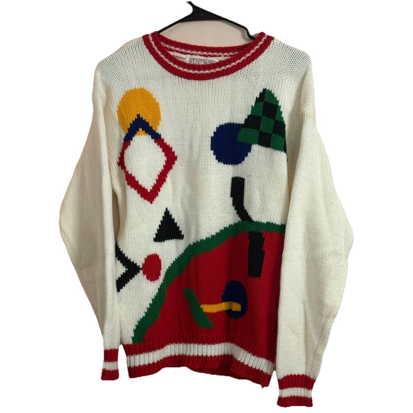 как выглядит VTG Lindsey Blake MEDIUM Colorful Geometric Pullover Sweater Acrylic фото