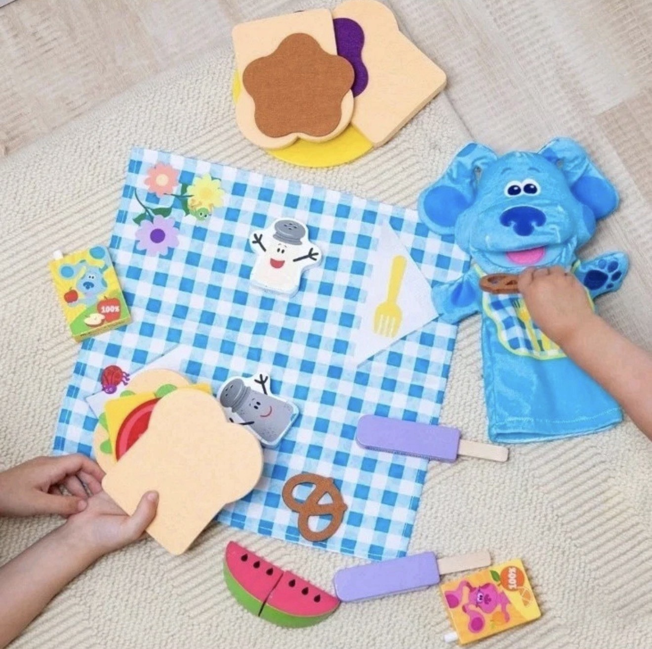 Melissa Doug Blues Clues You Share w/ Blue Picnic Play Set with Hand Puppet
