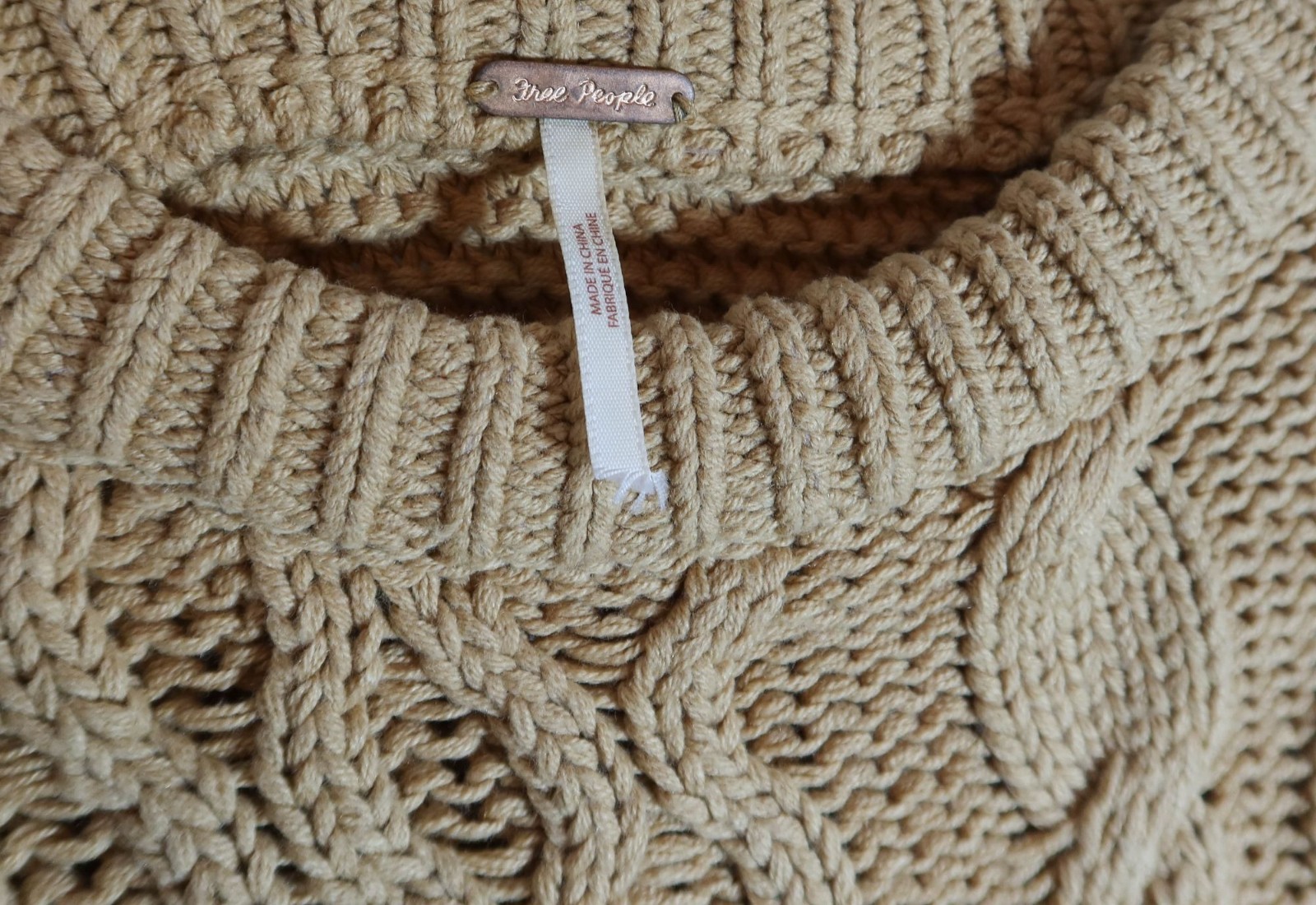 как выглядит FREE PEOPLE Dream Cable Knit Oversized Pullover Sweater Size S Tan Cozy Chunky фото