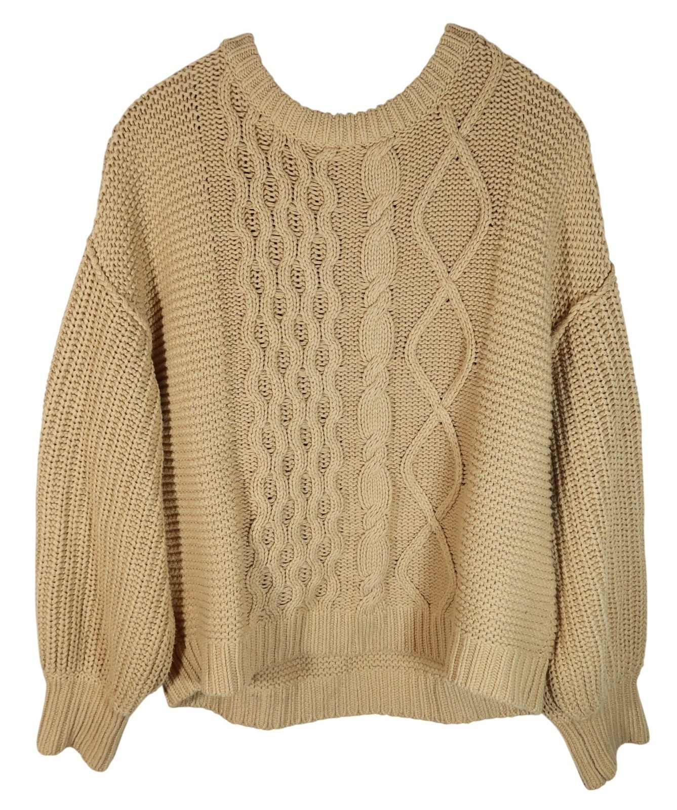 FREE PEOPLE Dream Cable Knit Oversized Pullover Sweater Size S Tan Cozy Chunky