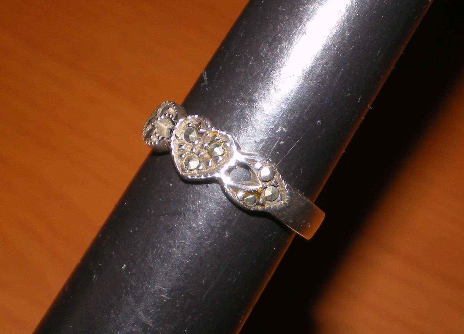 как выглядит Vintage 925 Sterling Silver Marcasite Delicate HEART Band size 5 2.9 grams фото