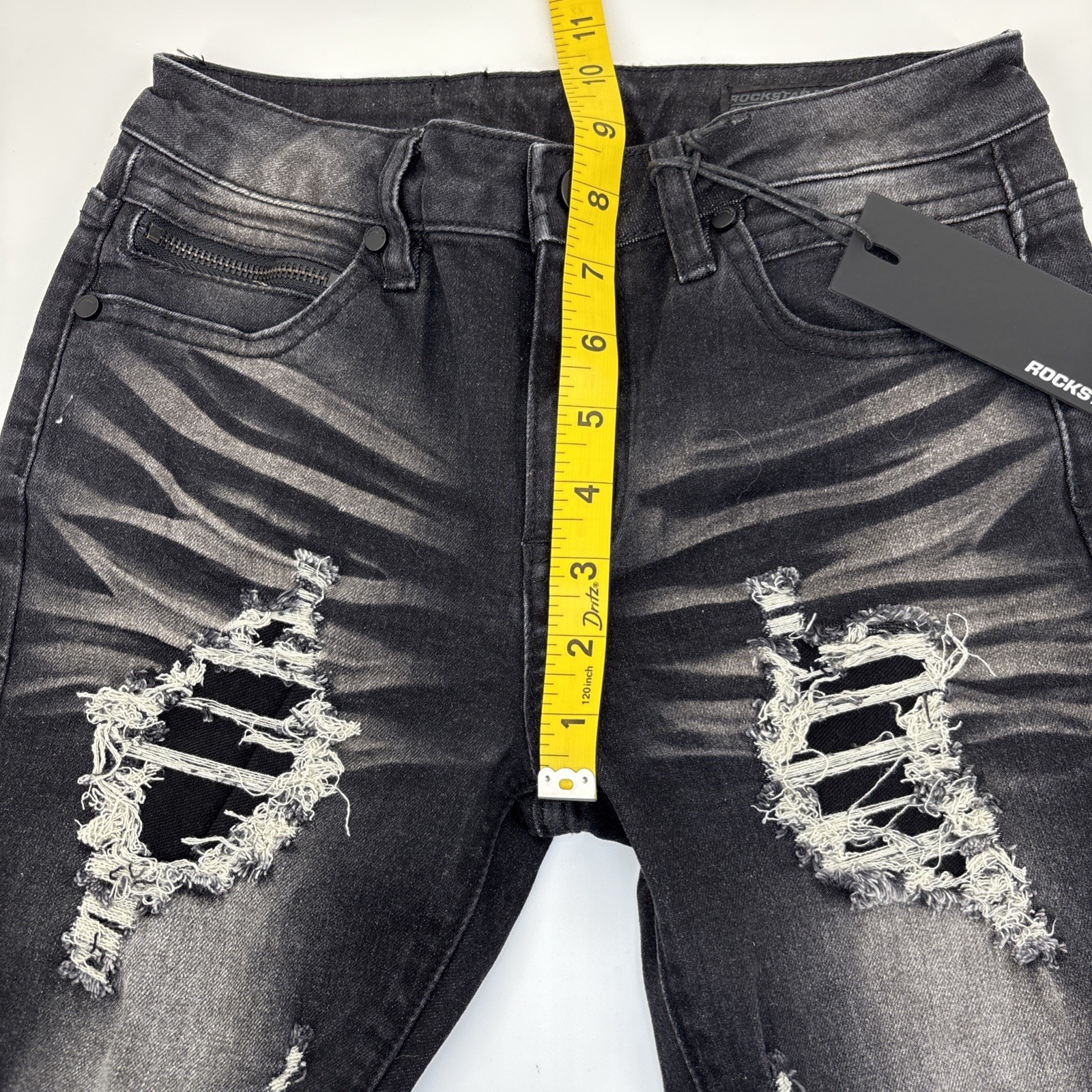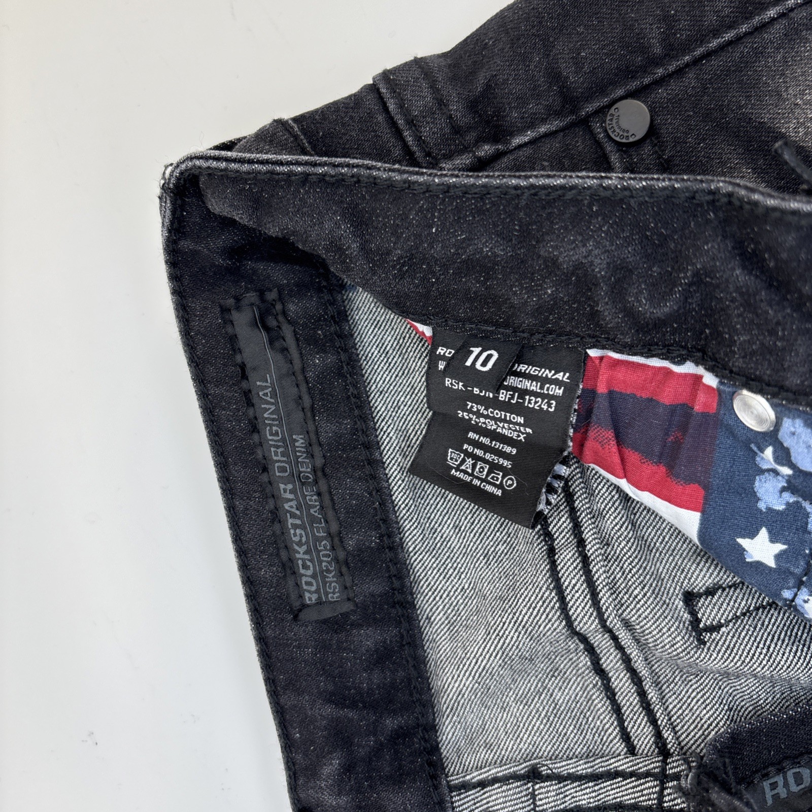 NWT Rockstar Original Boys Fateh Dark Grey Stacked Flare Jean Distressed 10 Y2K