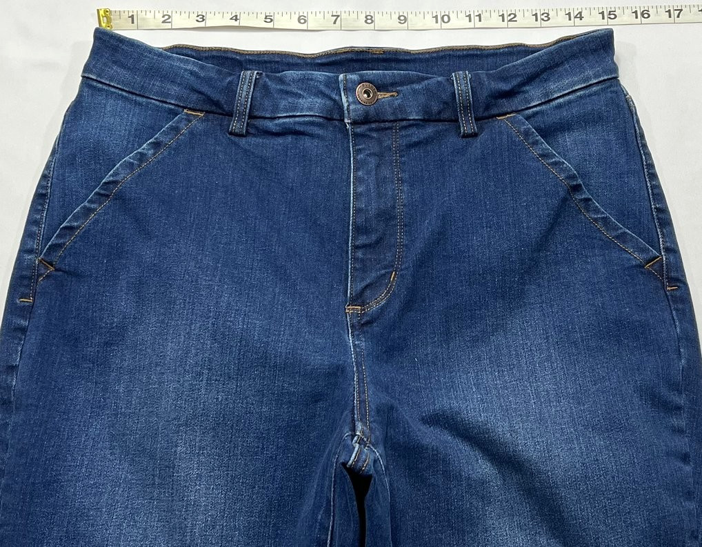как выглядит Duluth Jeans Womens 10x31 Blue High Rise Flared Leg Trouser Stretch Dark Wash фото