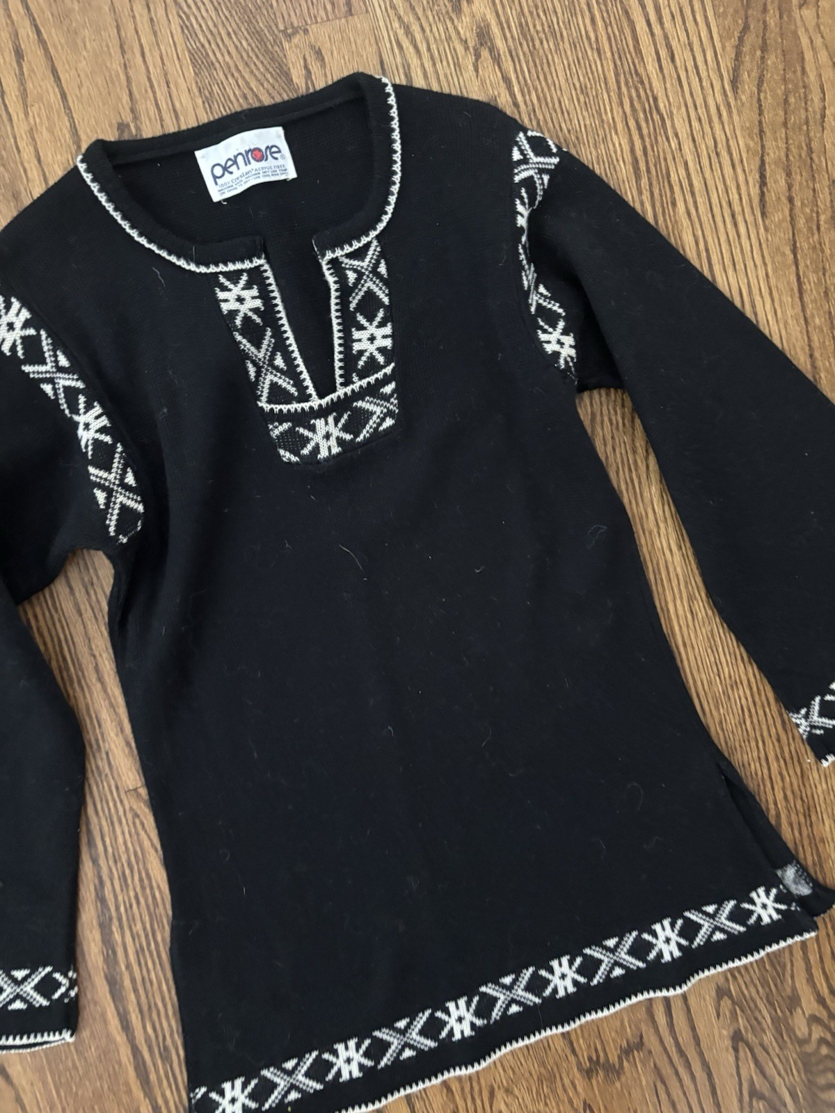 как выглядит Vintage 1970 s Boho Hippie Penrose Black Bell Sleeve Tunic Sweater S XS фото