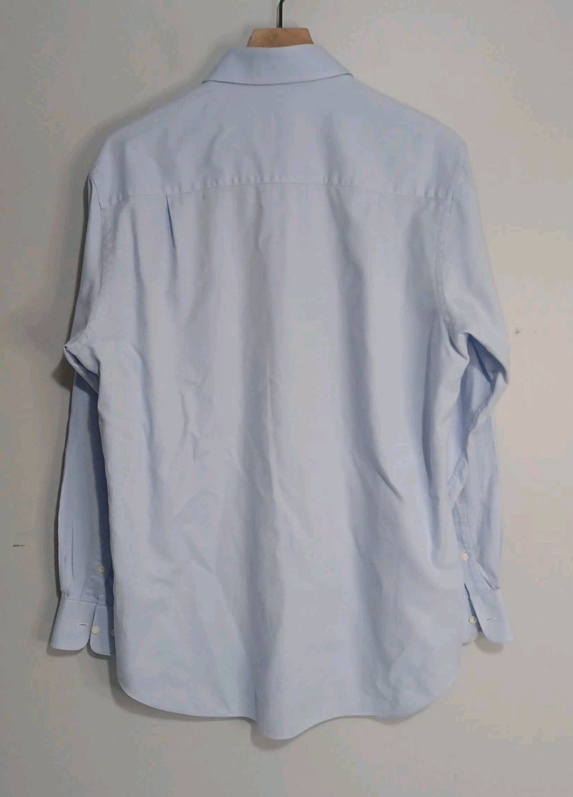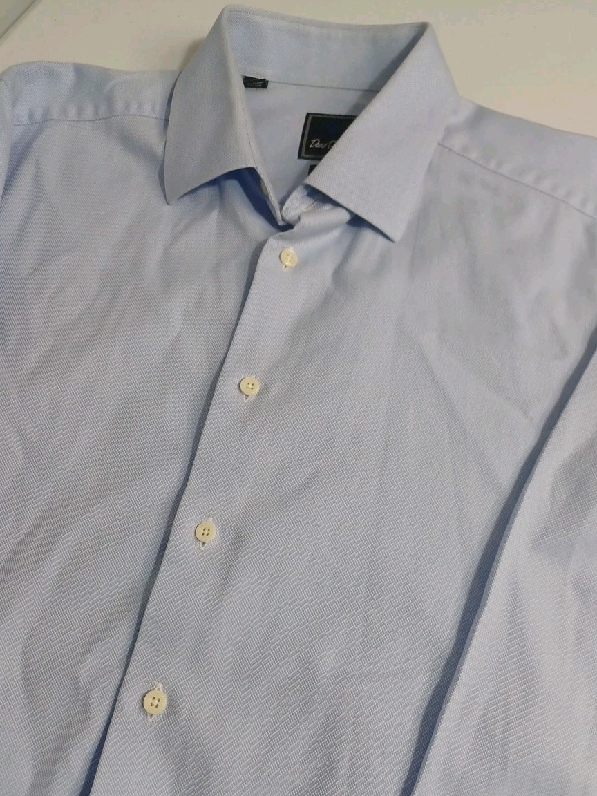 как выглядит David Donahue Dress Shirt Mens 17 34/35 Blue Trim Fit Button Up Long Sleeve L13 фото