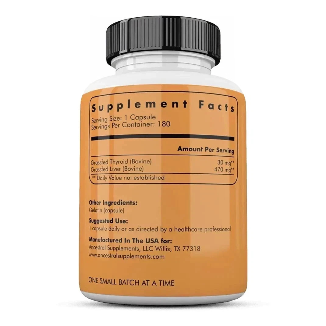 Grassfed Beef Thyroid with Liver 500mg Grass Fed/No Hormones/Non GMO 180 Caps US