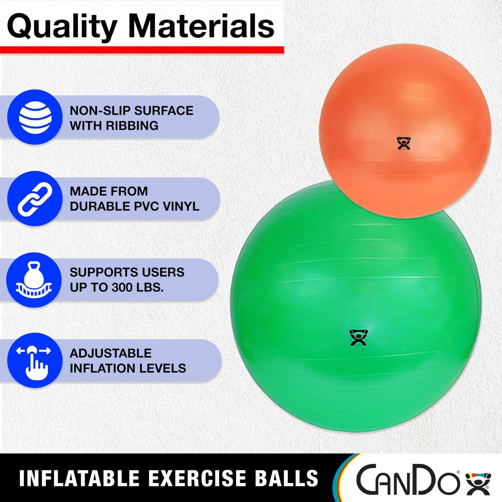 CanDo 55cm Orange Inflatable Exercise Ball for Fitness and Therapy