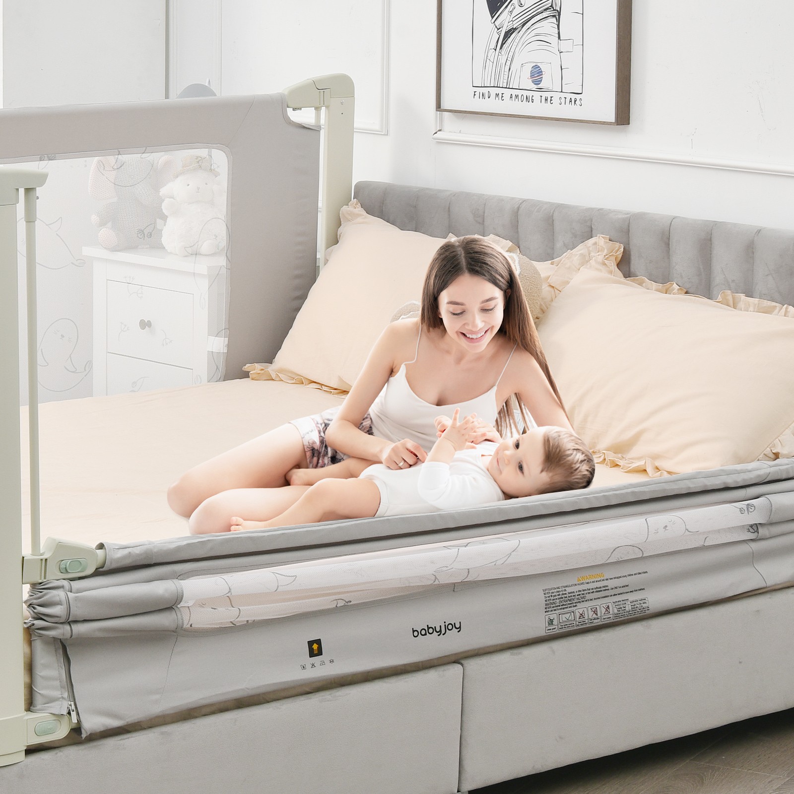 как выглядит 70" Bed Rail Guard for Toddlers Kid w/ Adjustable Height Safety Lock фото