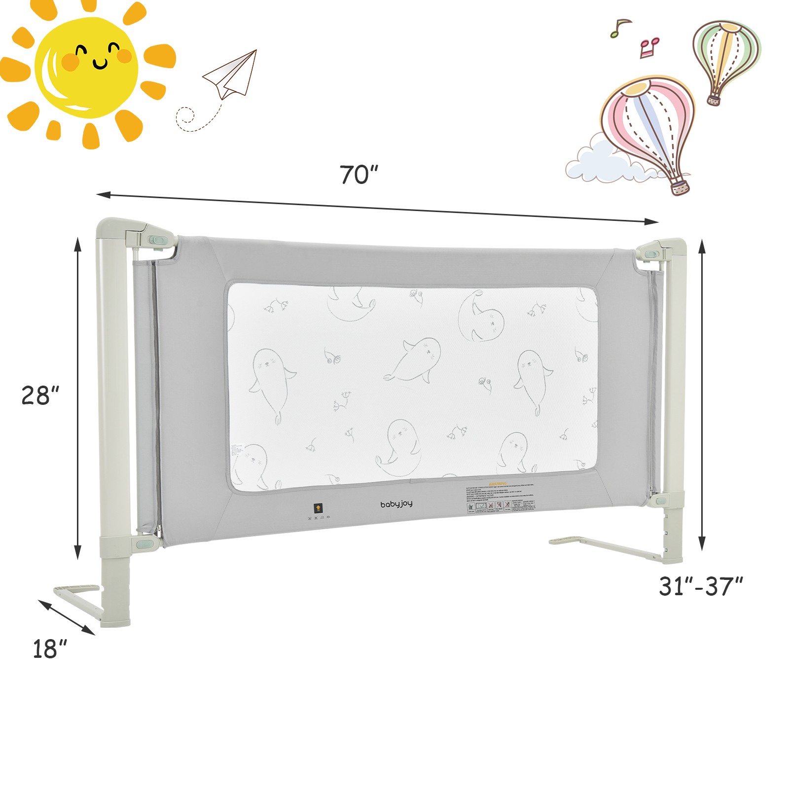 70 Bed Rail Guard for Toddlers Kid w/ Adjustable Height Safety Lock