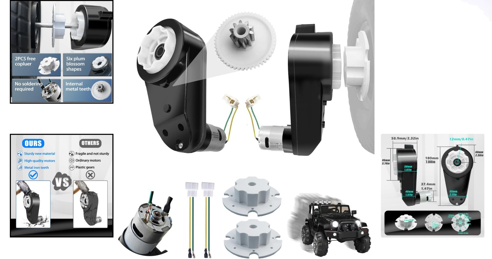 High-Torque 2PCS 24V Motor Gearbox Set for Electric Ride-On Cars - Easy Install