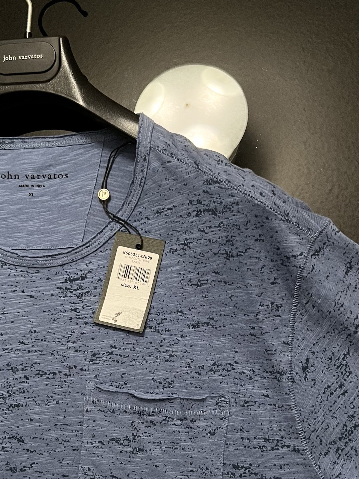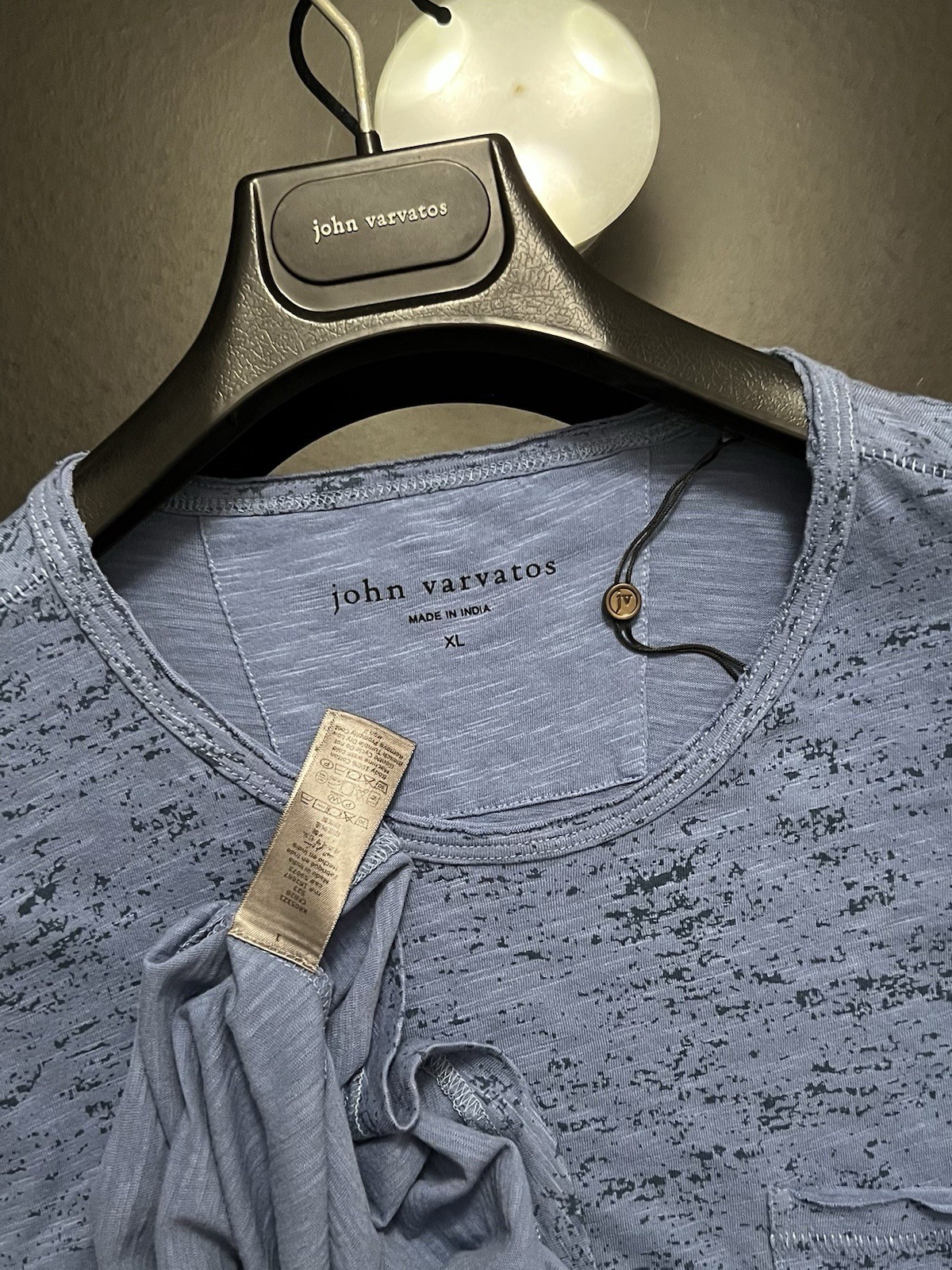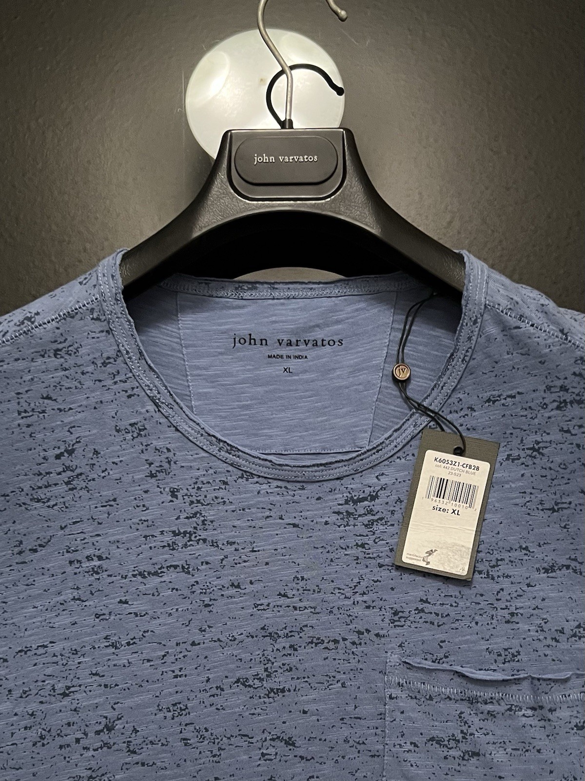 как выглядит John Varvatos Mens T - Raw Cut Edges - Pickstitch Seams - Dutch Blue - 118 NWT фото