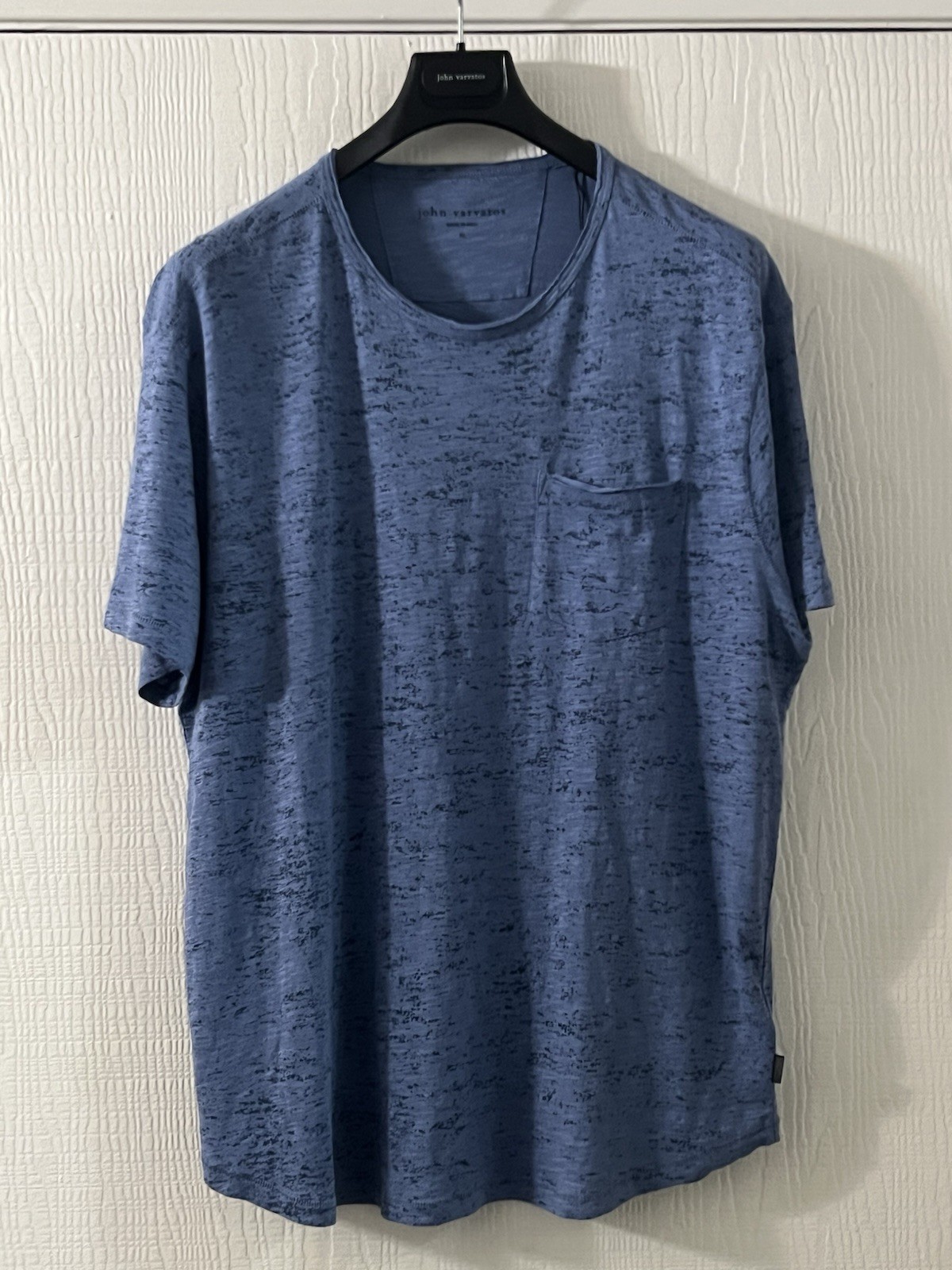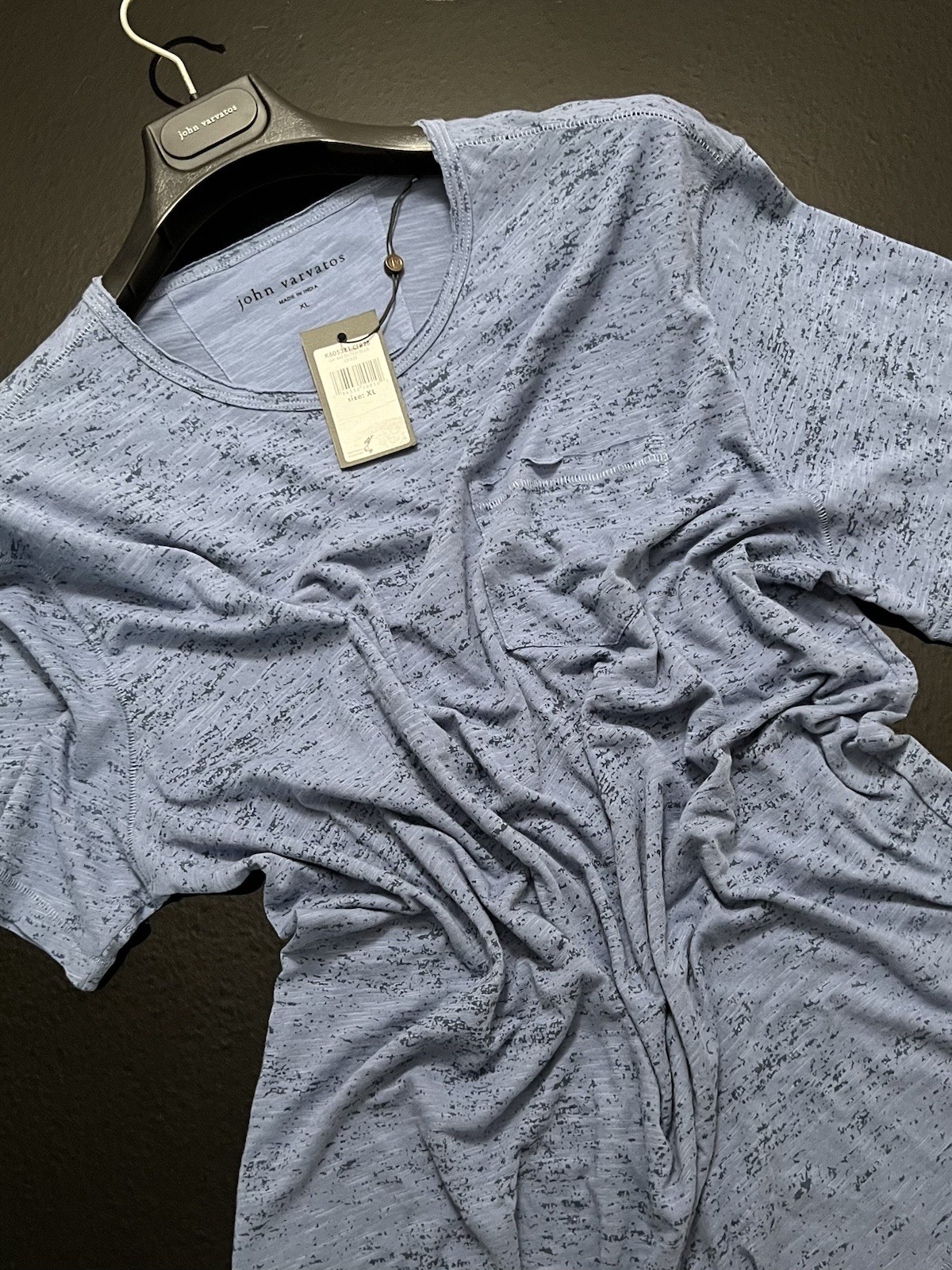 John Varvatos Mens T - Raw Cut Edges - Pickstitch Seams - Dutch Blue - 118 NWT