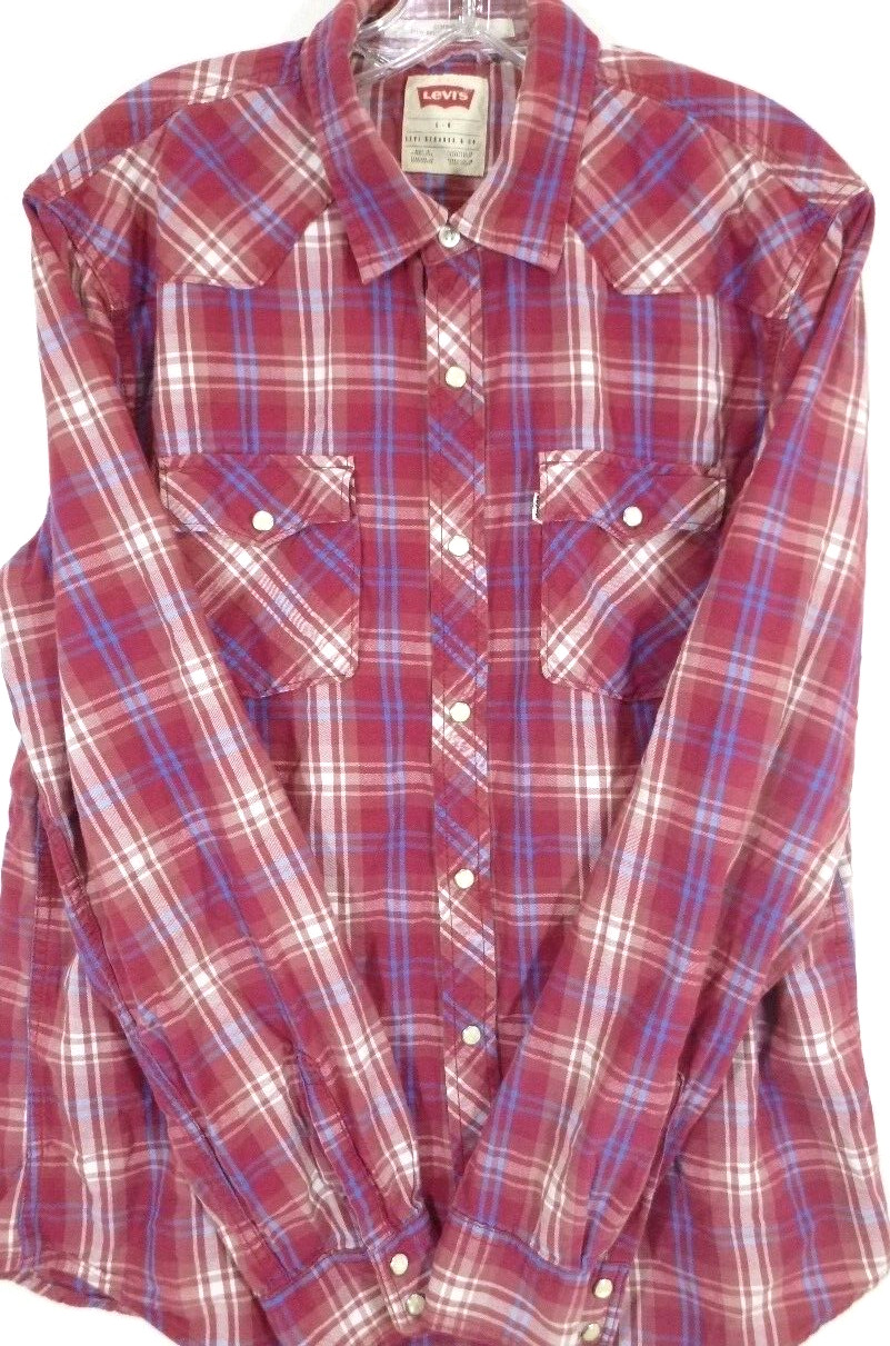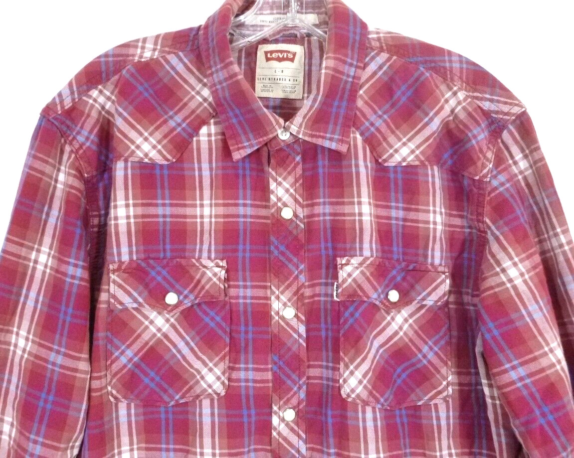 Levis-Mens Long Sleeve Western Pearl Snap Shirt-Large-Red Plaid-100 Cotton