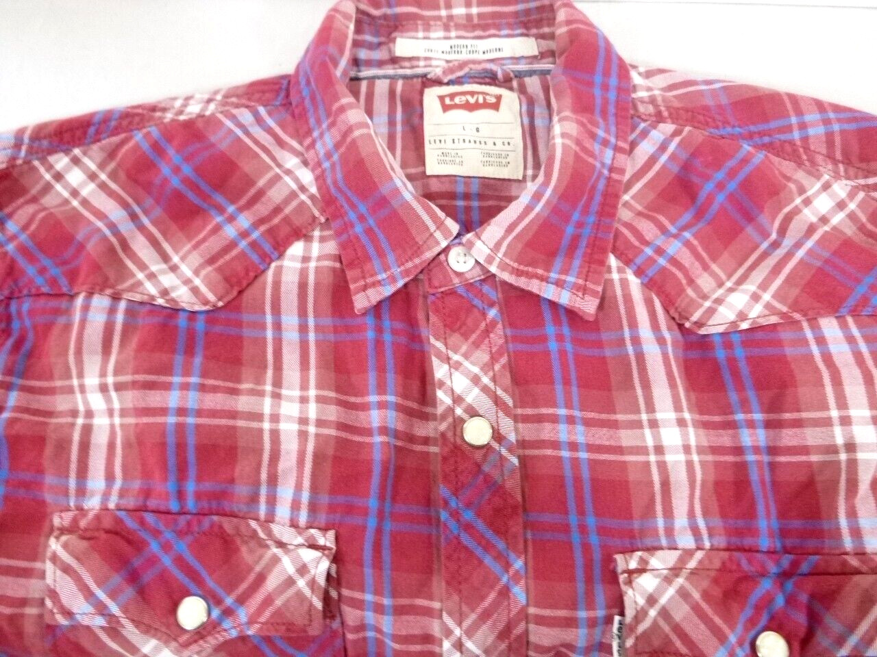 как выглядит Levis-Mens Long Sleeve Western Pearl Snap Shirt-Large-Red Plaid-100 Cotton фото