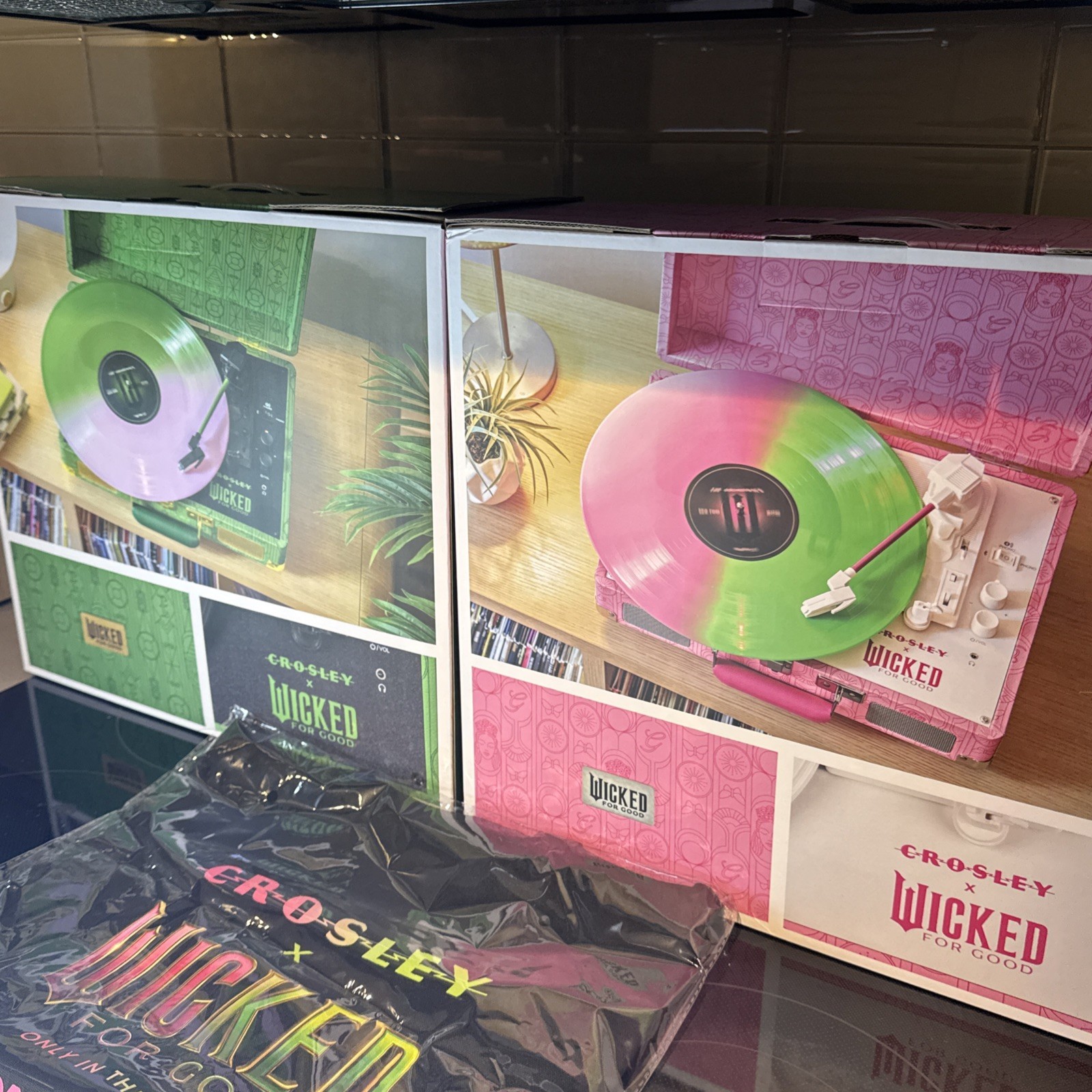 Wicked For Good Crosley RSD Black Friday Cruiser Plus Green Pink FULL SET NIB
