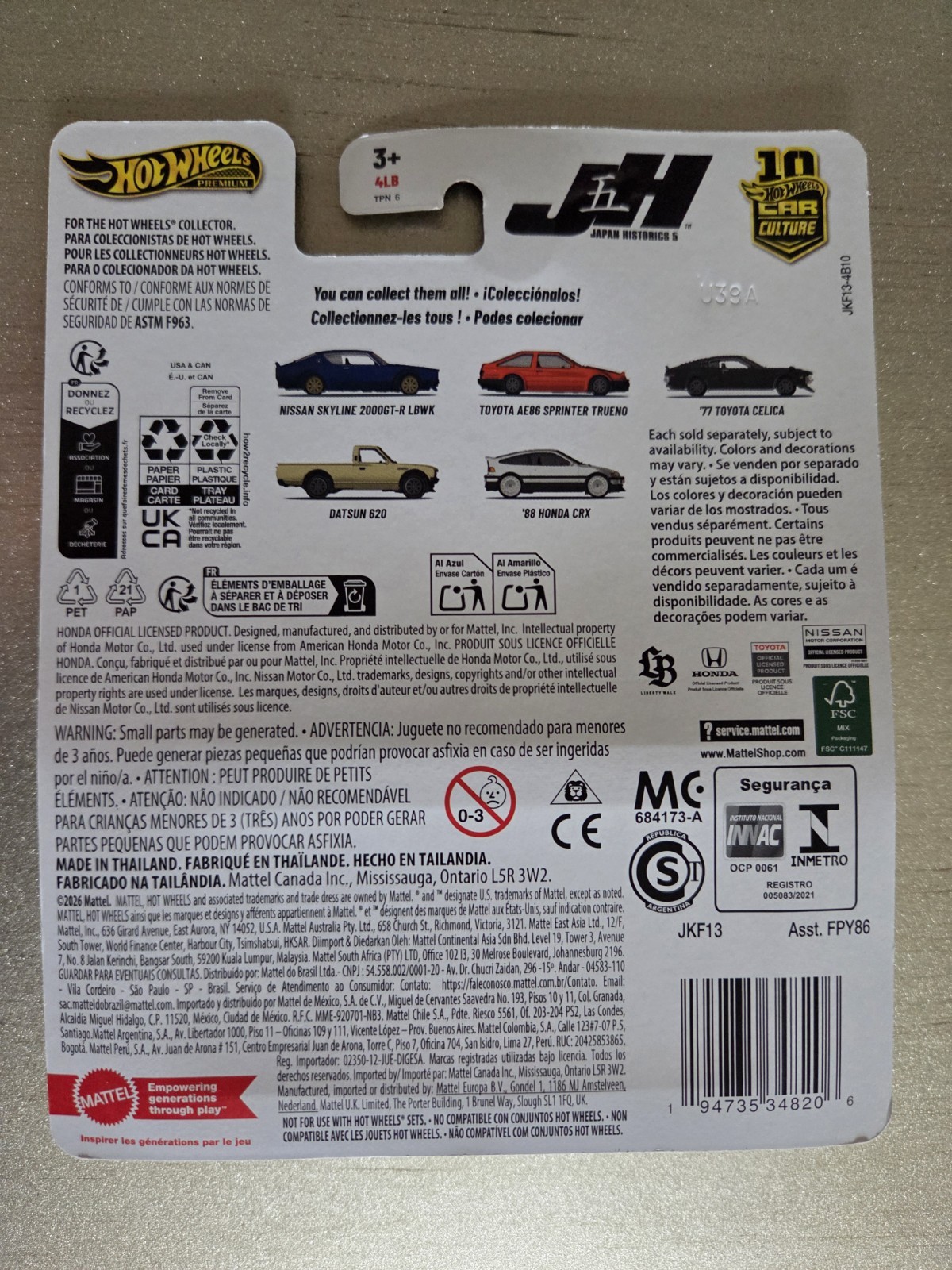 Hot Wheels Premium Japan Historics 5 '88 Honda CRX - Diecast Car Real Riders