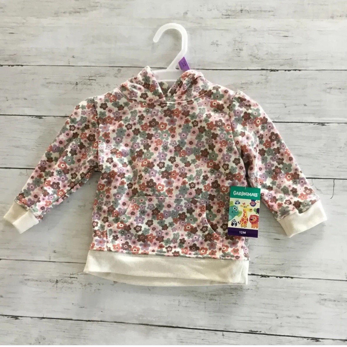 GARANIMALS Infant Toddler Girls Print Hoodie W/Front Pocket Multicolor 12 Months