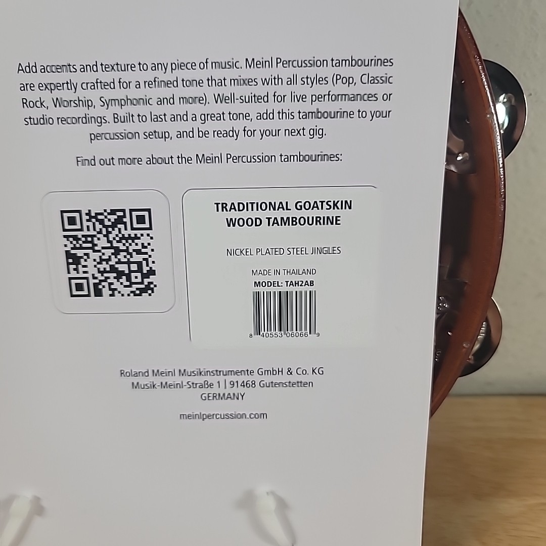 Meinl GoatSkin Wood Tambourine With Double Nichel Plated Steel Jingles New 2