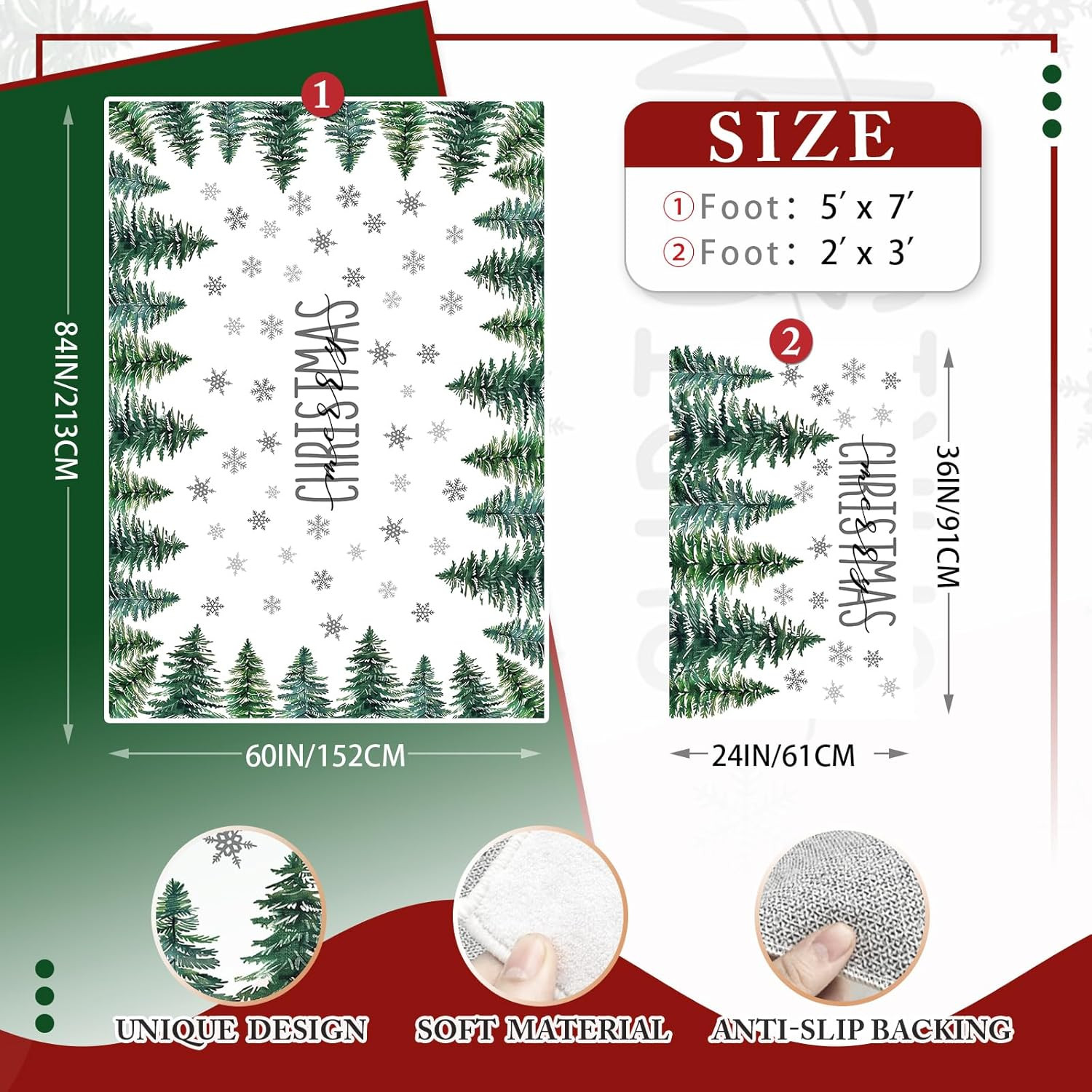 как выглядит Merry Christmas Tree Washable Area Rug 5 X 7 Ft, Xmas Holiday Soft Non Slip Larg фото