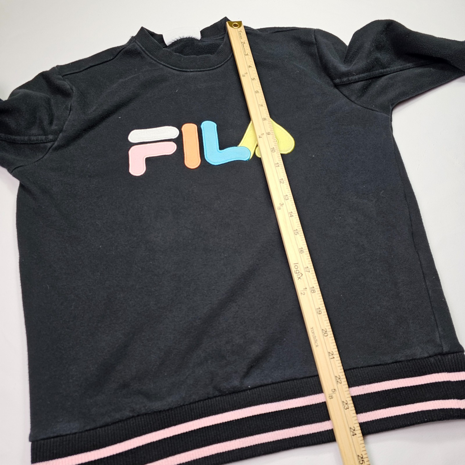 Fila Women s Sweatshirt M Black Multicolor Logo Crewneck Pullover Heavy Wear