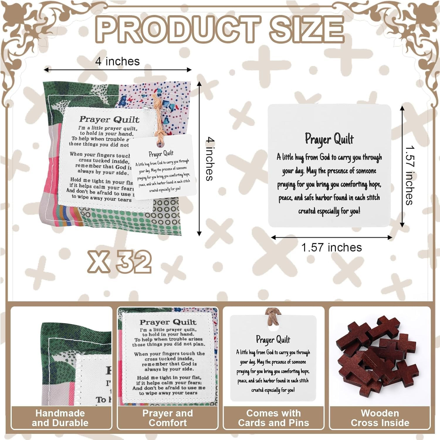 как выглядит Mini Prayer Quilt Set - 32 Handmade Scripture Patches for Church Gifts фото