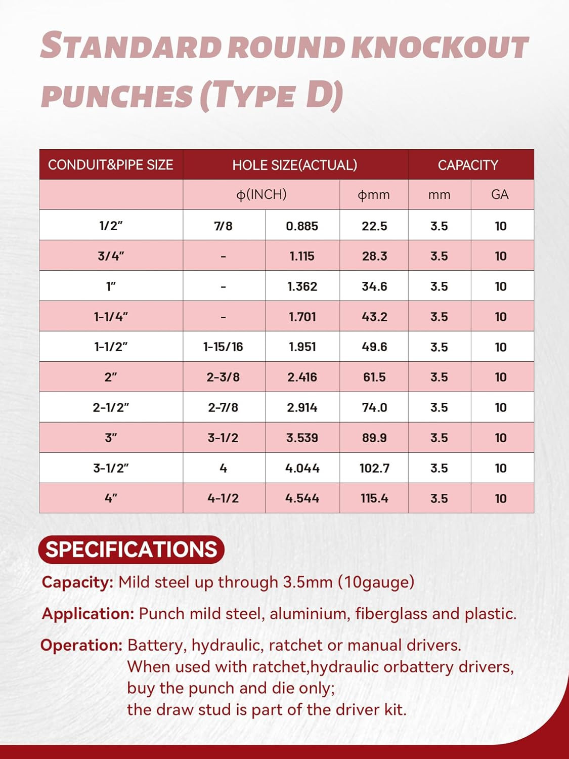 • Hydraulic Knockout Hole Punch Set 1/2 to 4 Inch Electrical Conduit Hole Cutter S