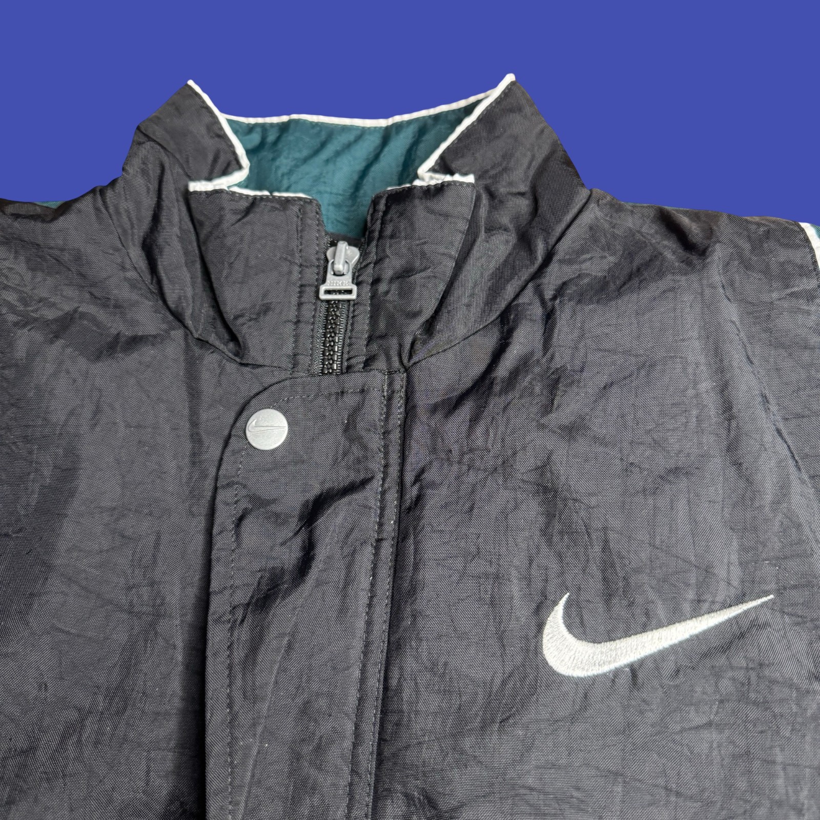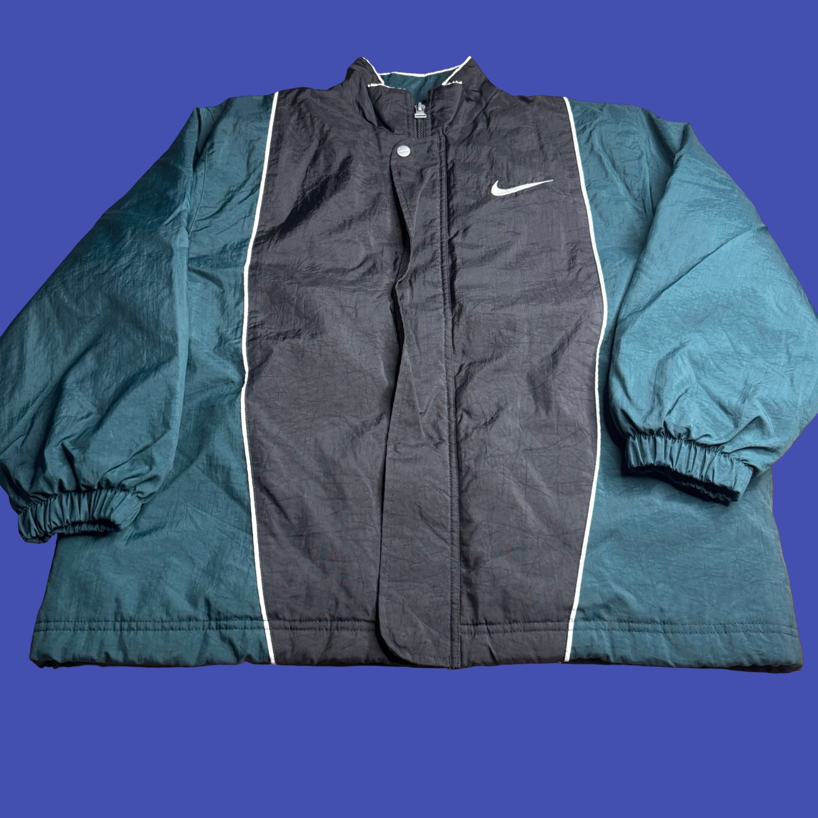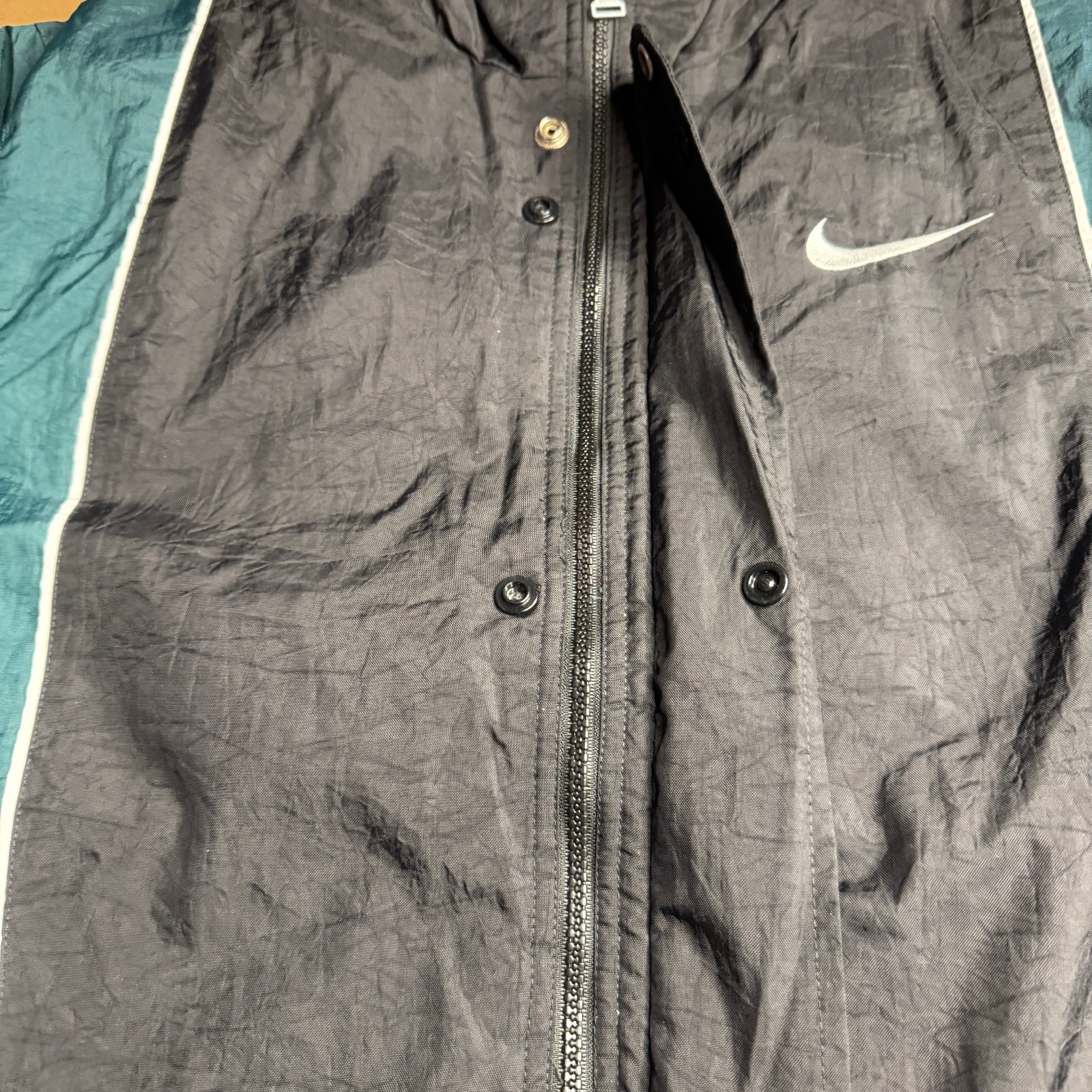 как выглядит Nike Youth Large 14-16 Windbreaker Jacket Black Green Quilt Lined Track 90s Vtg фото