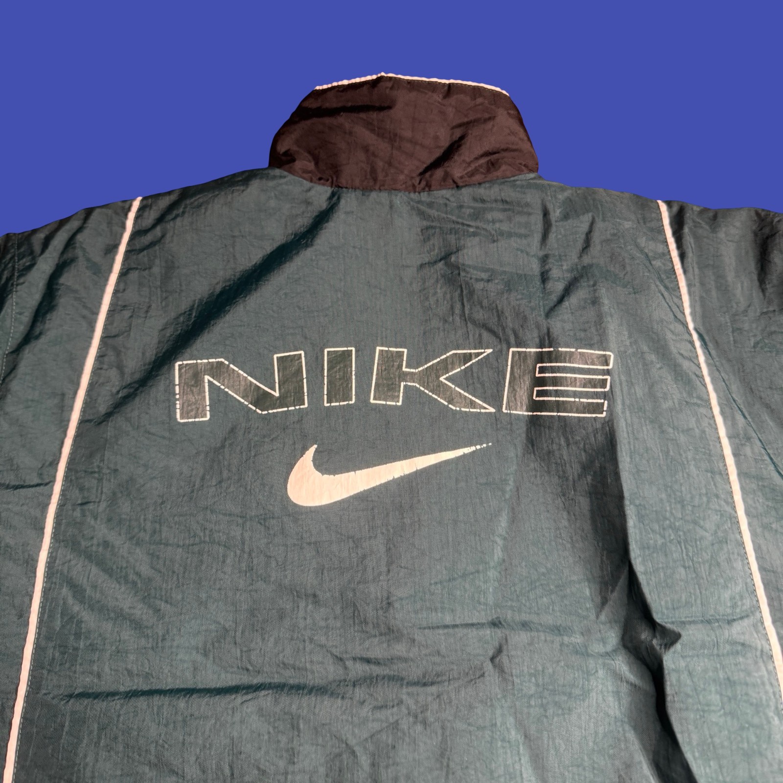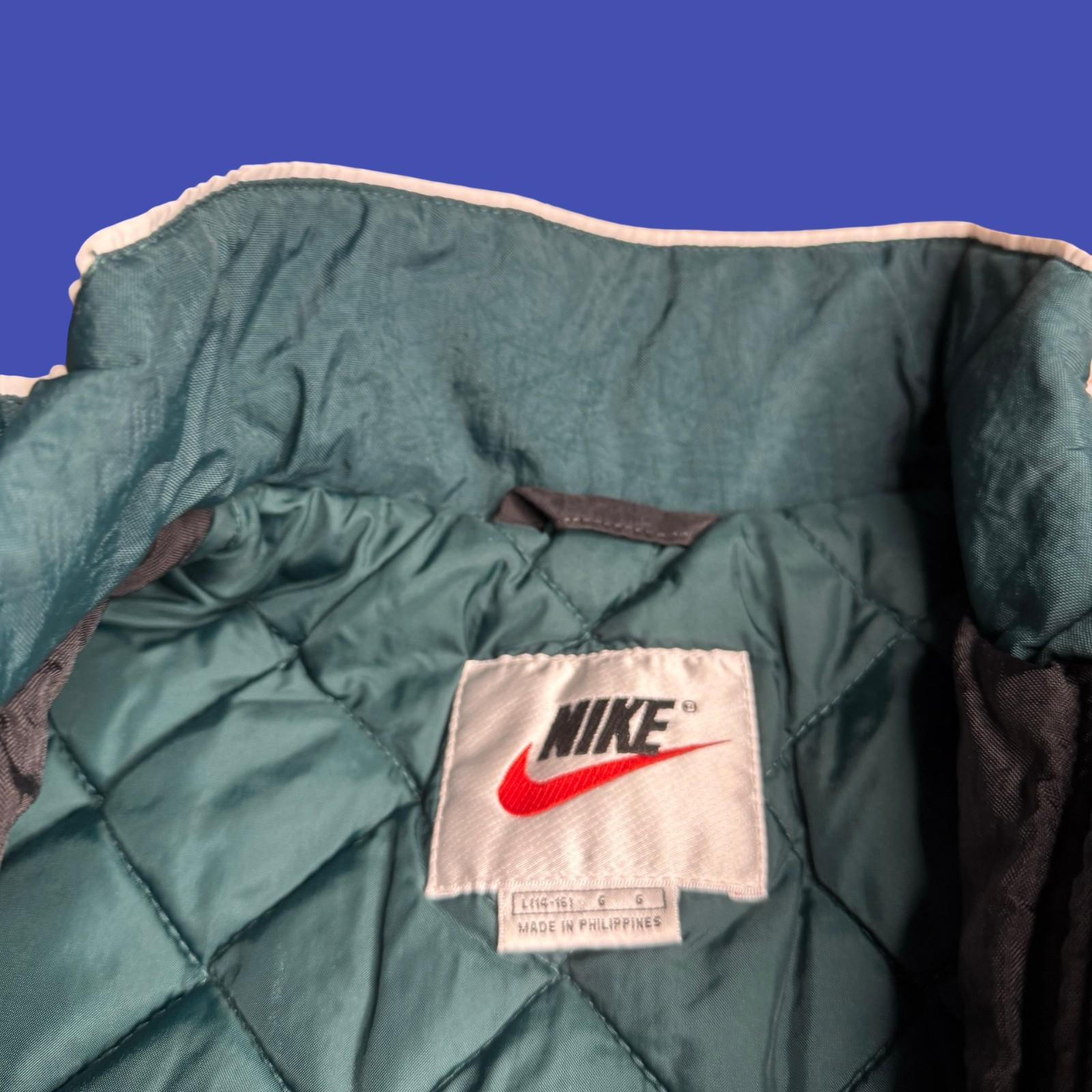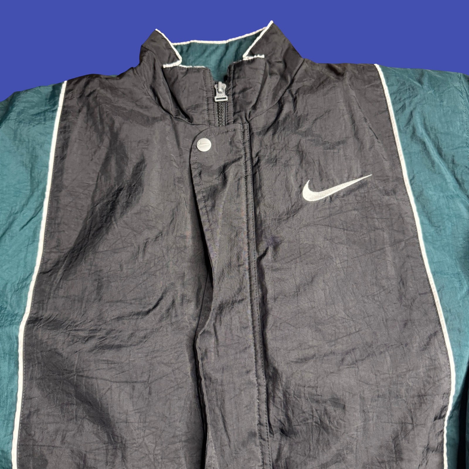 как выглядит Nike Youth Large 14-16 Windbreaker Jacket Black Green Quilt Lined Track 90s Vtg фото