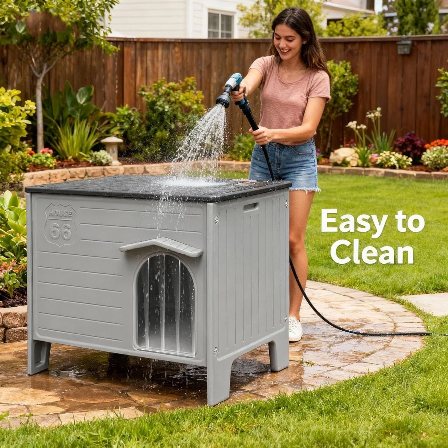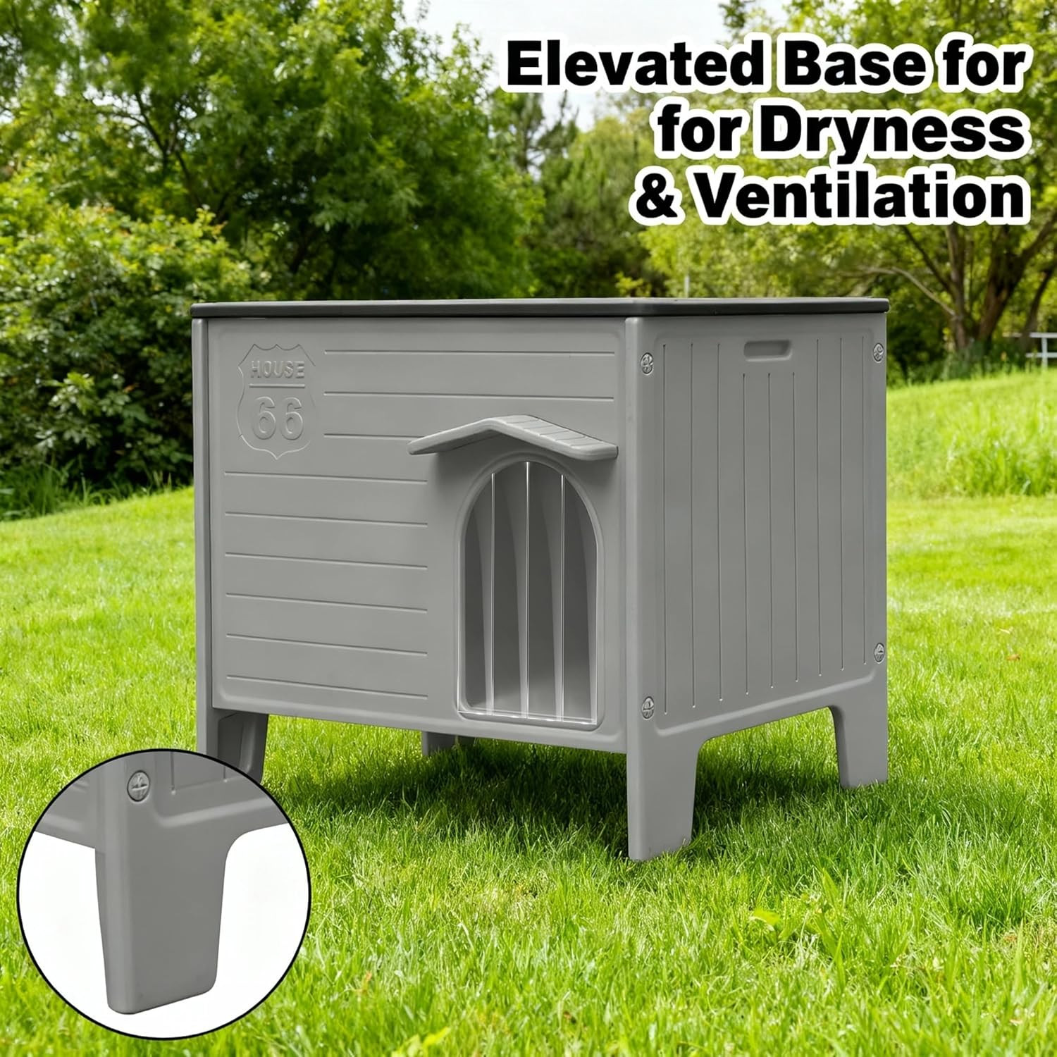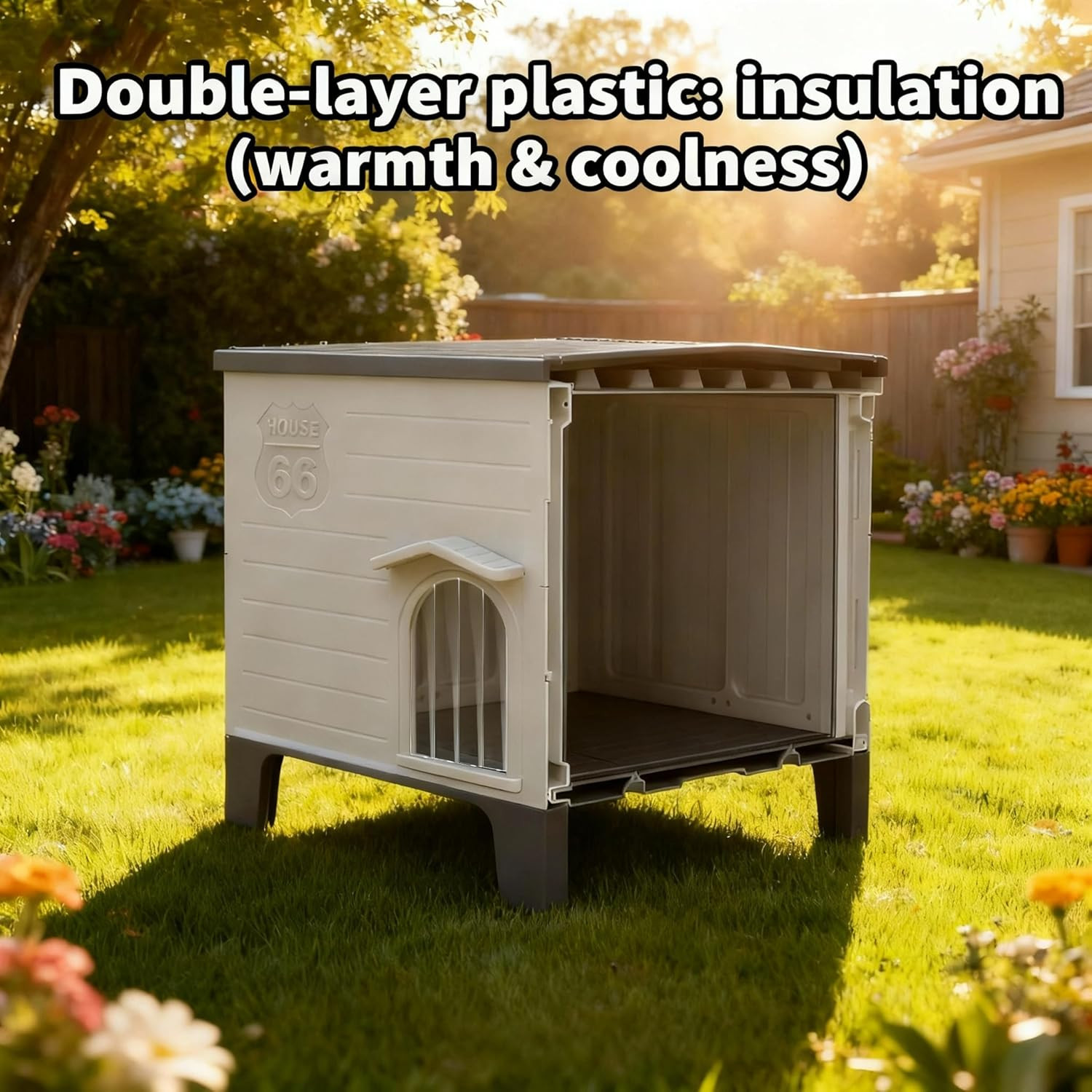 Insulated Outdoor Indoor Dog House Plastic Weatherproof Elevated Dog Shelter, Ea