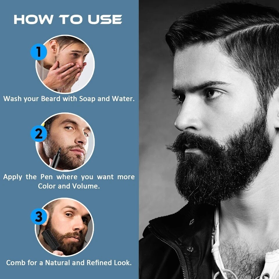 2pcs Men Beard Filling Pen Hair Grower Waterproof Filler Moustache Eyebrow Brush