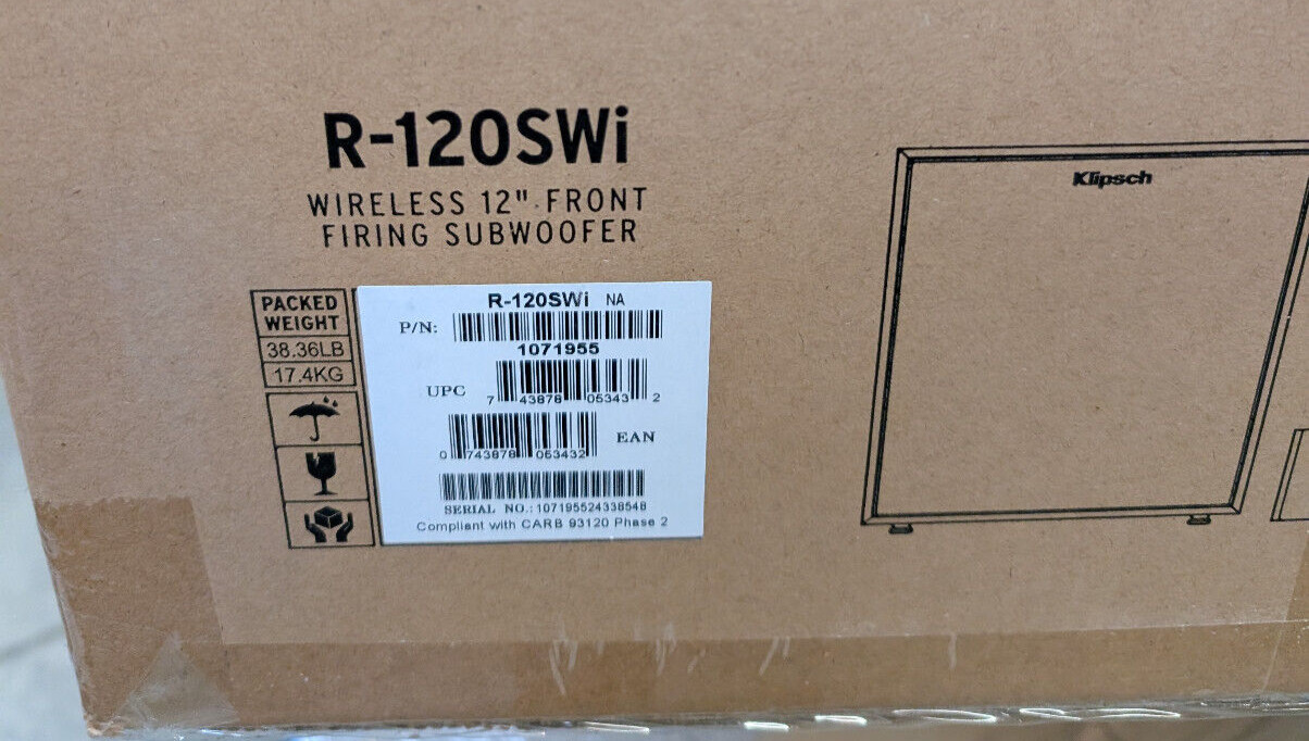 Factory Sealed Klipsch R-120SWi High Performance Wireless 12 Subwoofer