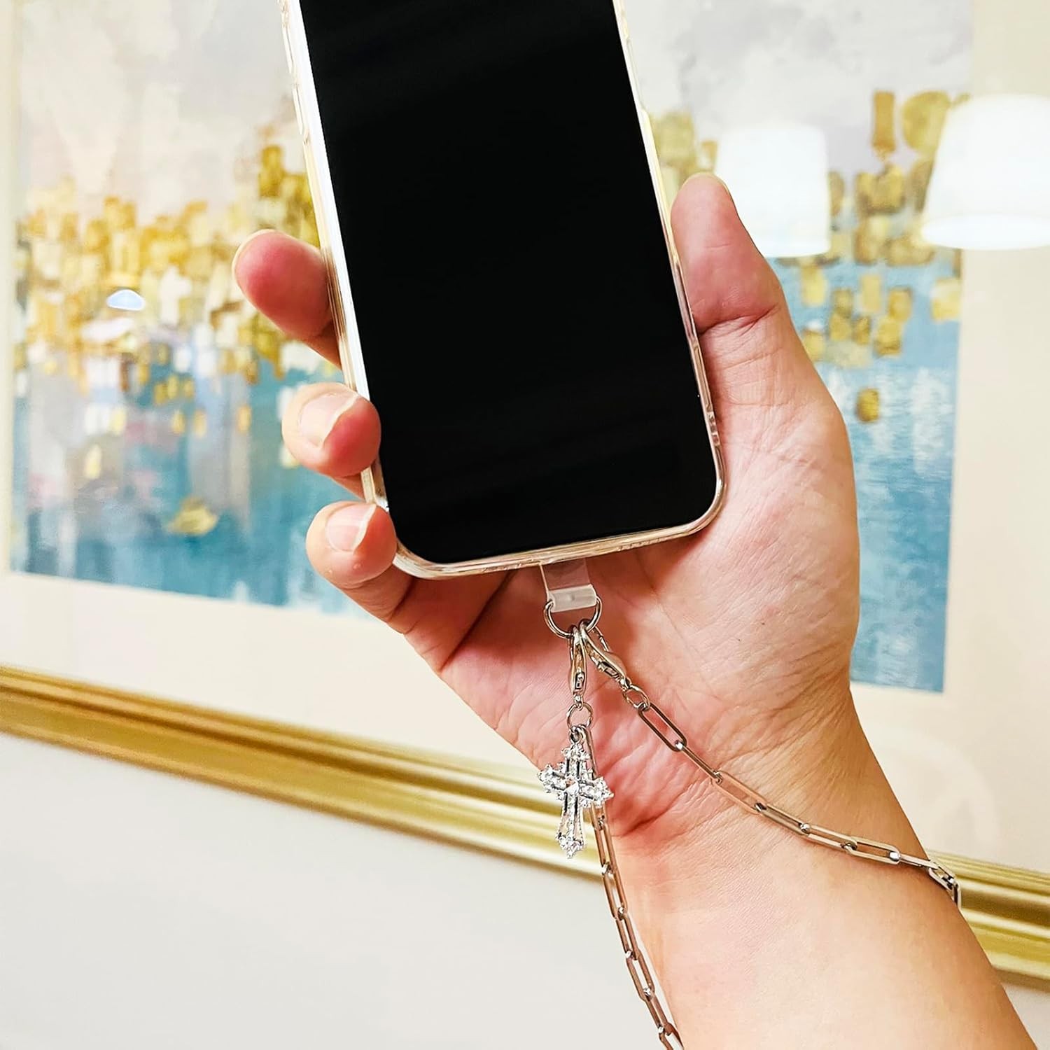 Phone Wrist Strap Metal Chain Wristlet 01 silver Christ Cross