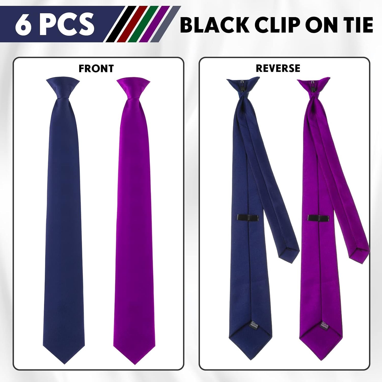 как выглядит Haysandy 6 Pcs Clip on Ties for Men Solid Color Men